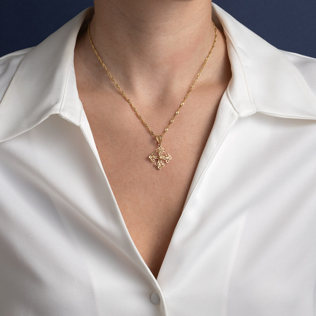14K Gold Byzantine Filigree Cross