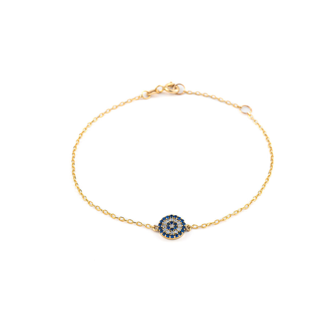 Chain bracelet with the evil eye symbol decorated with zircons.