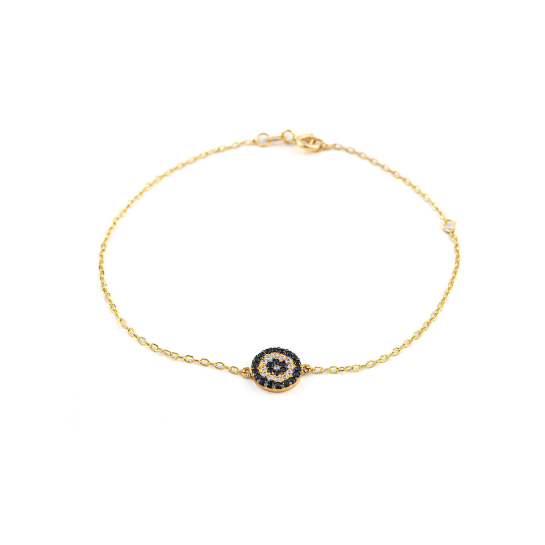 Chain bracelet with the evil eye symbol decorated with zircons.