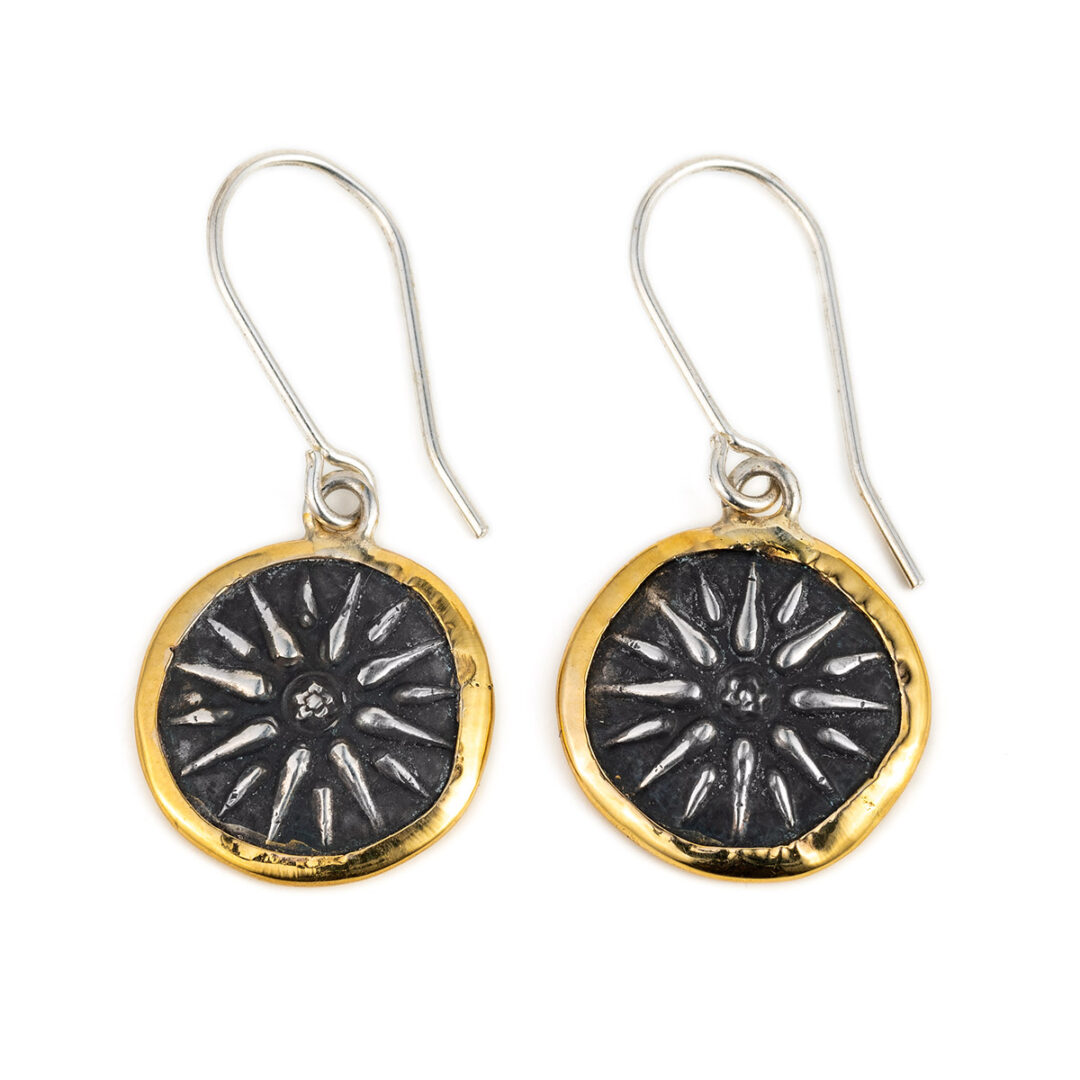 A beautiful pair of earrings inspired by the ancient Vergina sun symbol.