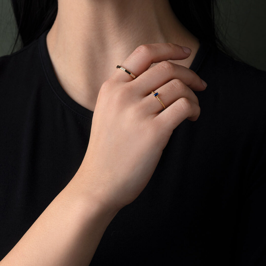 14K Yellow Gold Blue Square Stone Ring