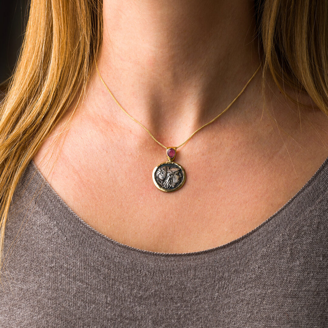 14K Gold Pendant with Alexander the Great – Goddess Athena
