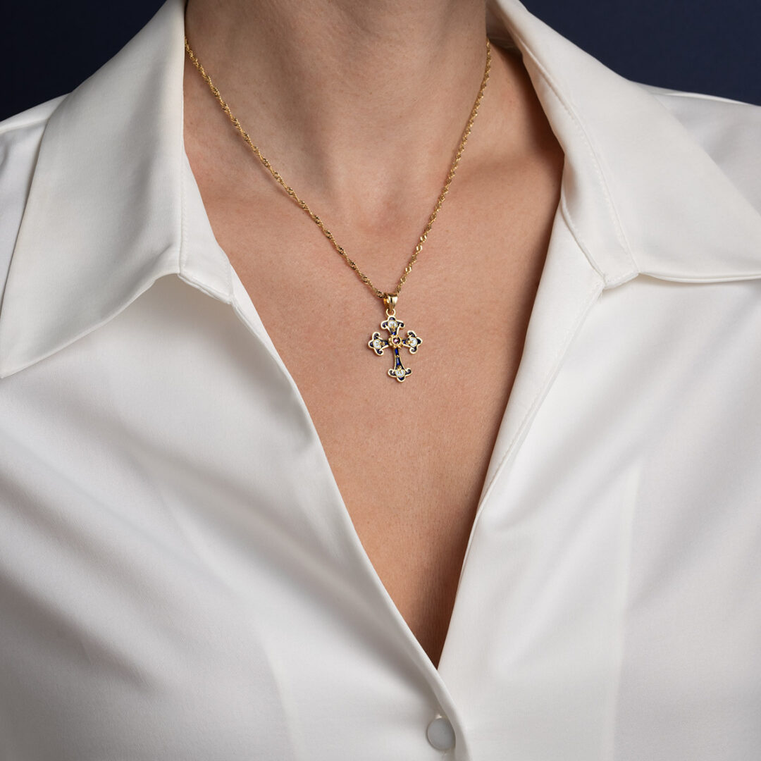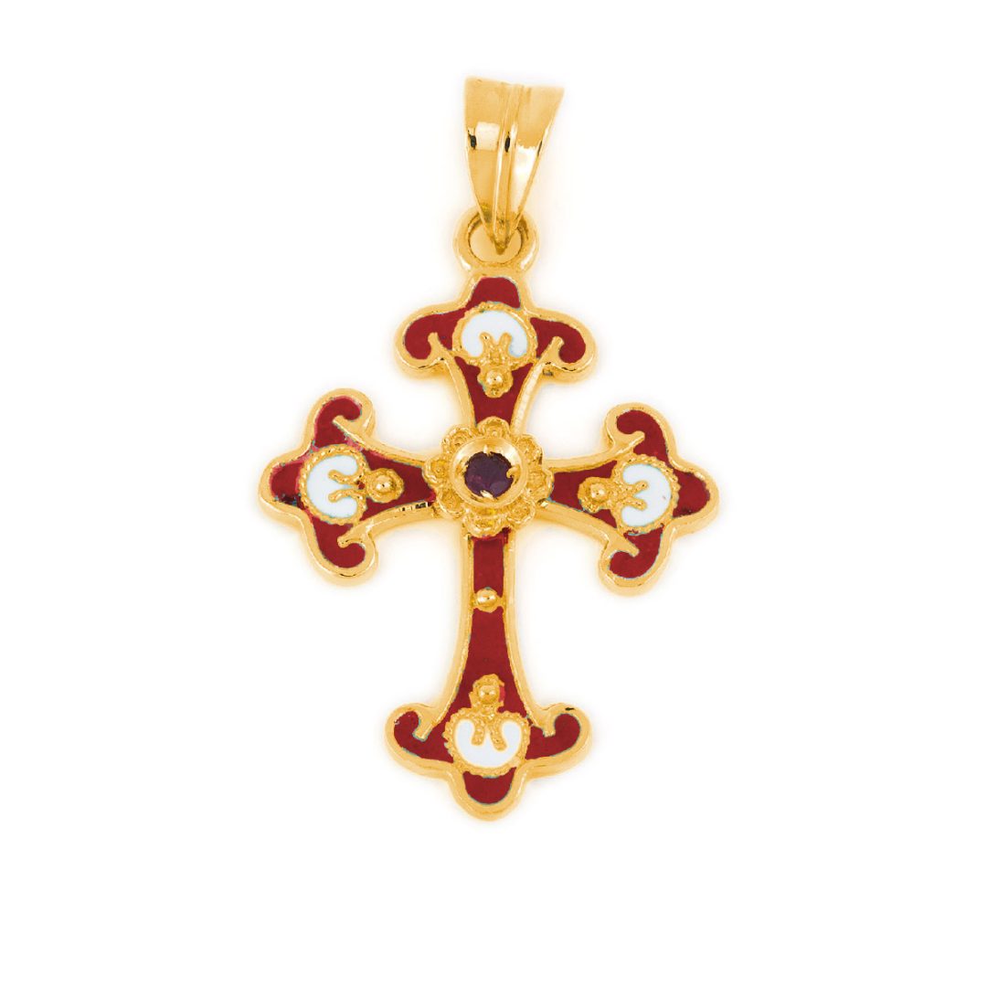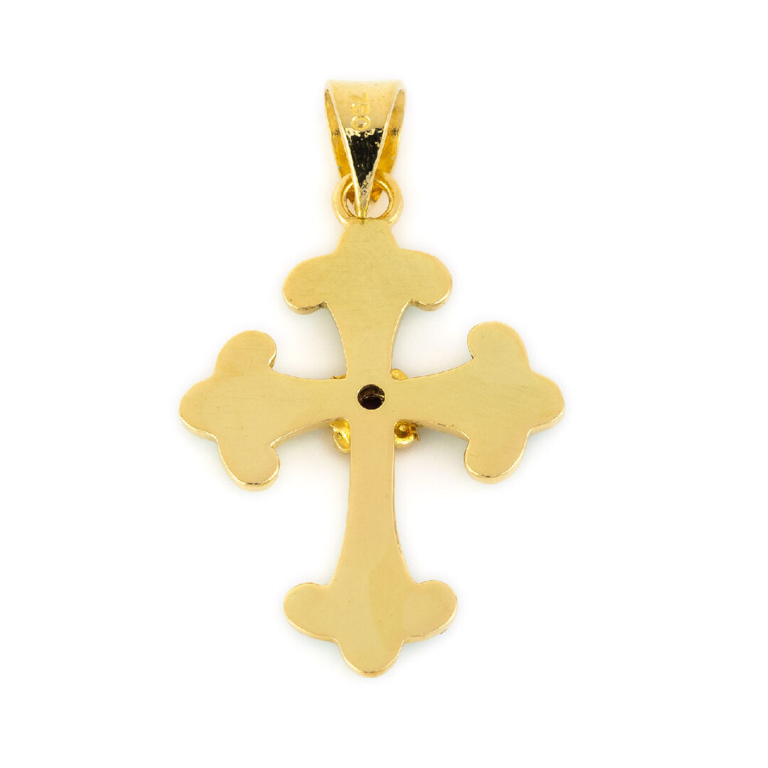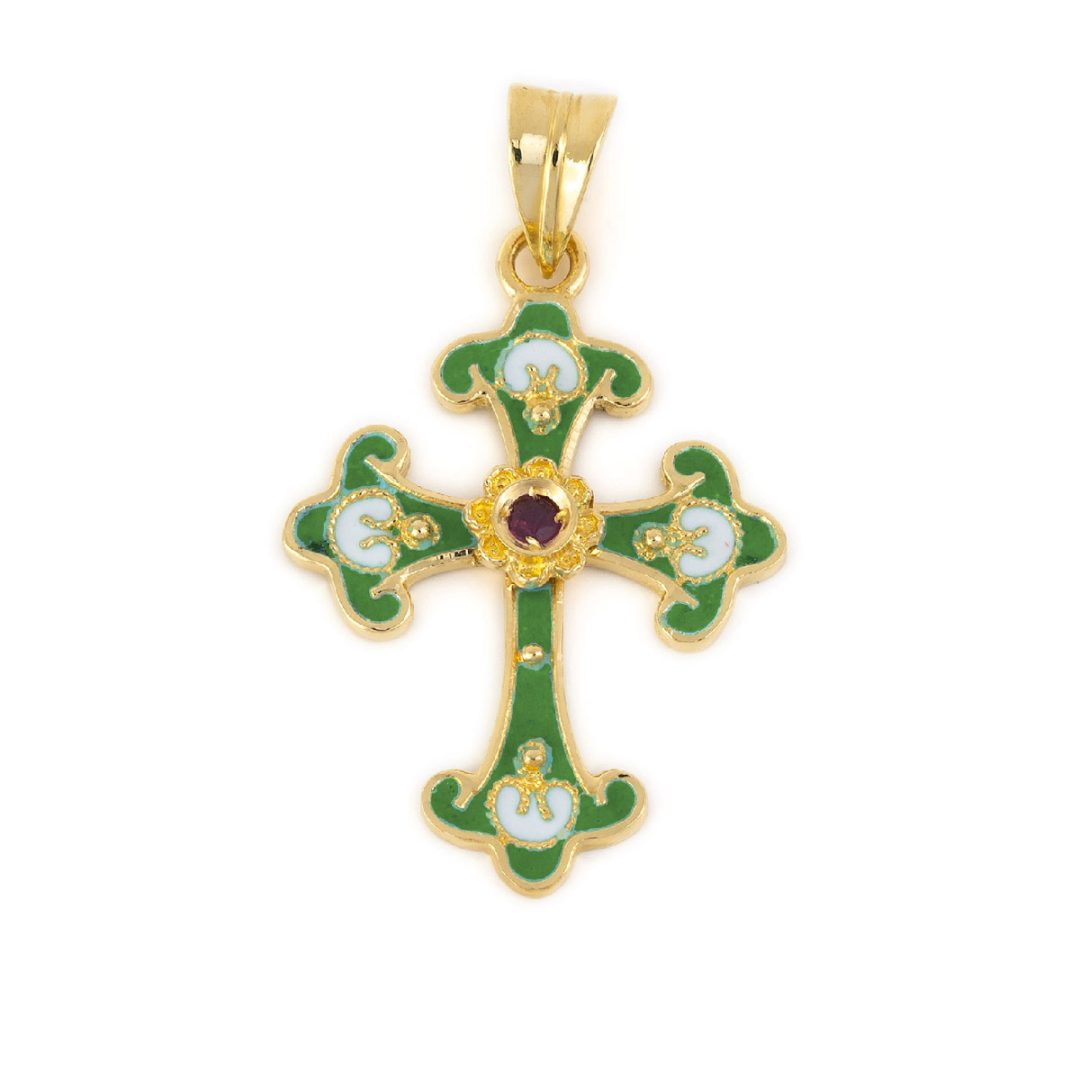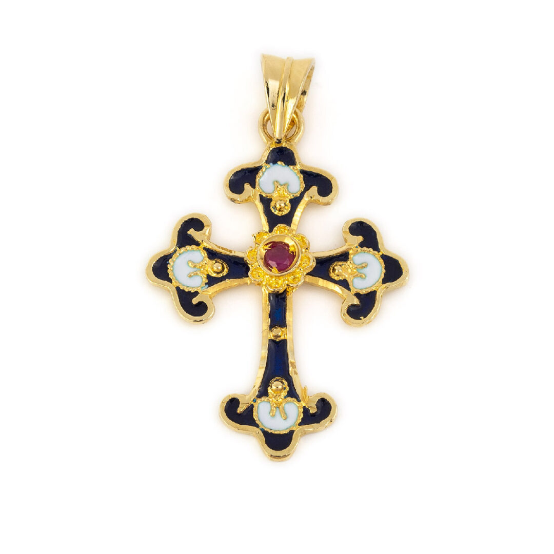 18K Gold and Turquoise Enamel Byzantine Ruby Cross