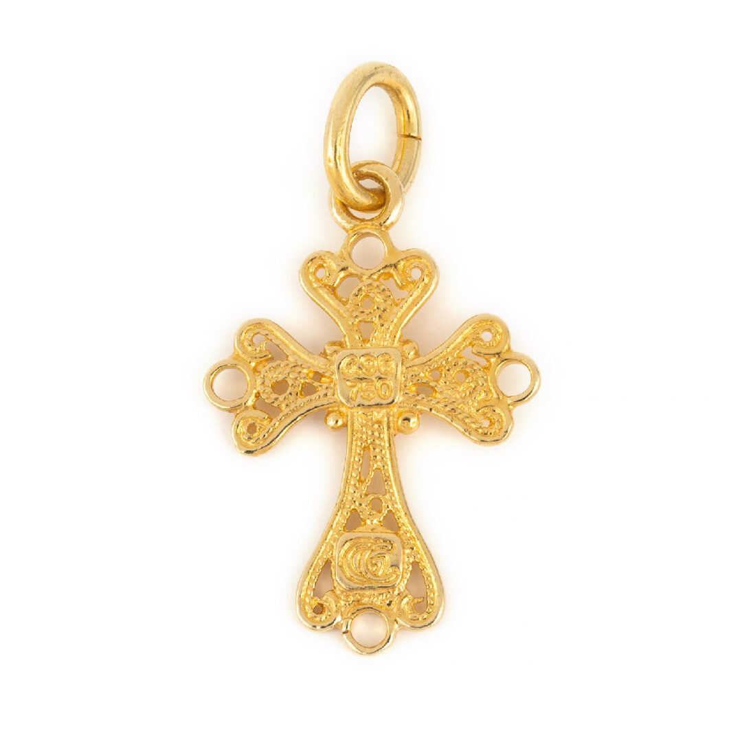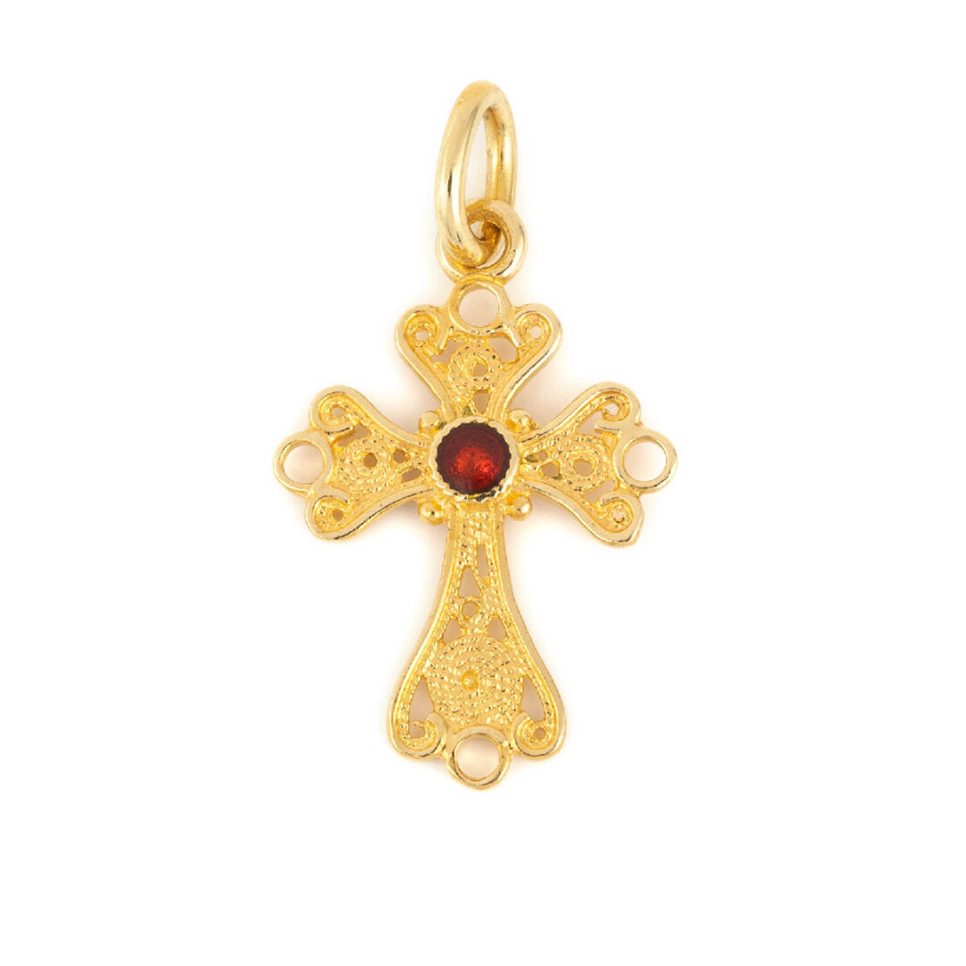 18K Gold Byzantine Filigree Cross with Red enamel Adelaide