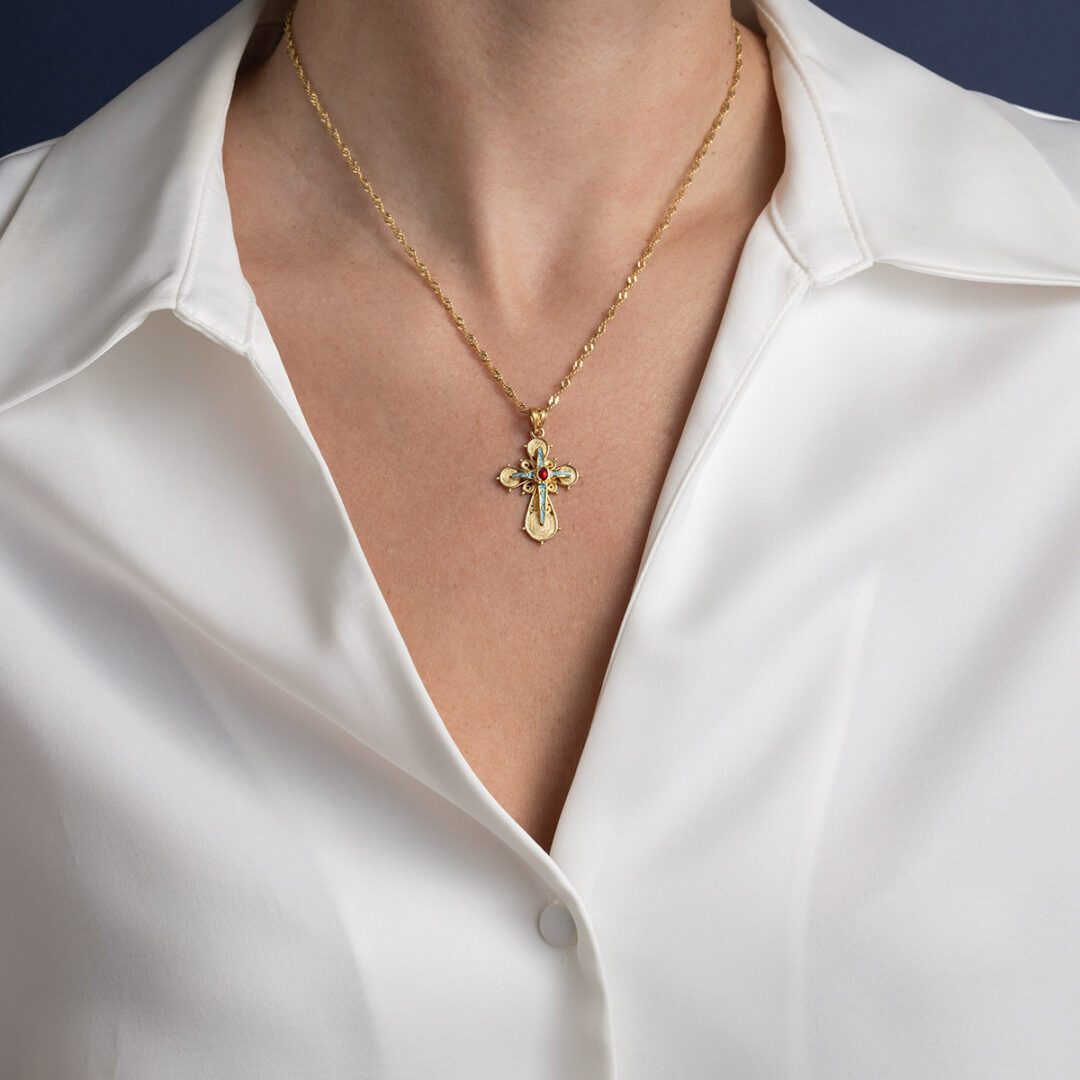 Byzantine Cross is embellished with a fine filigree and double enamel