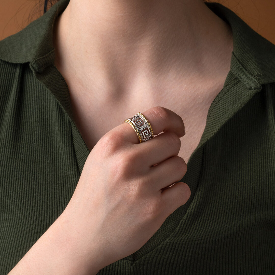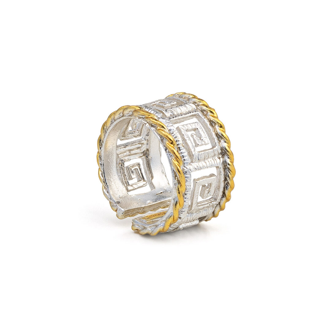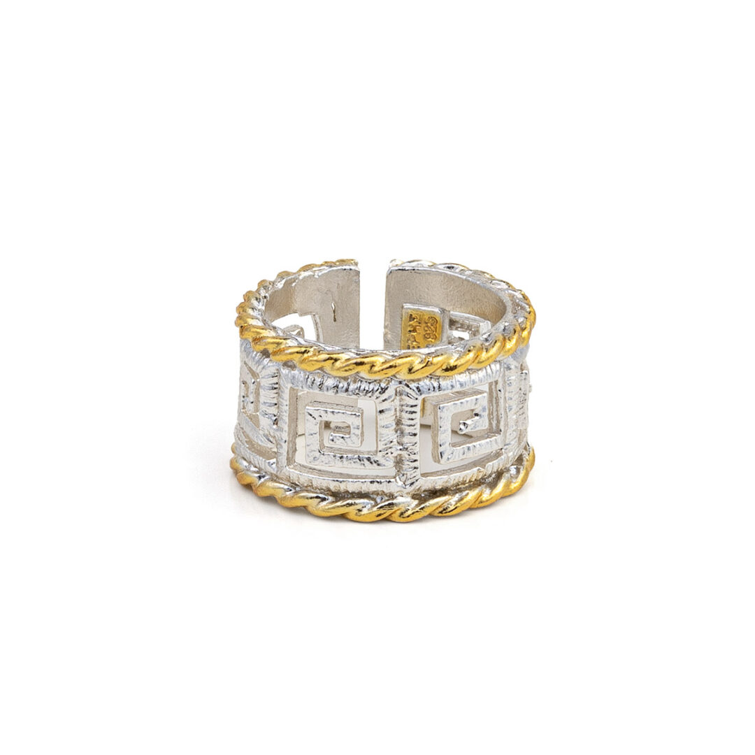 925 Sterling Silver and Gold Plated Greek Key Lace Ring