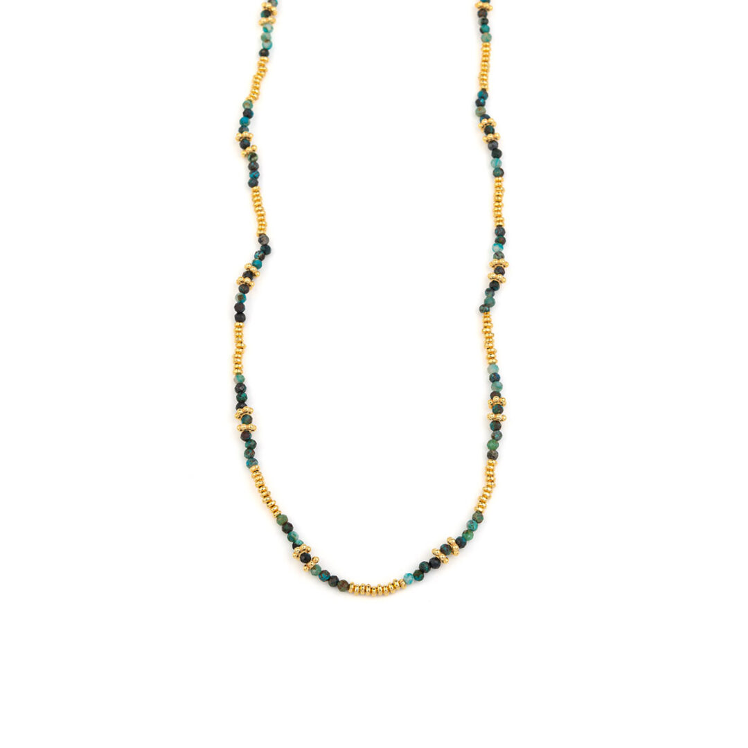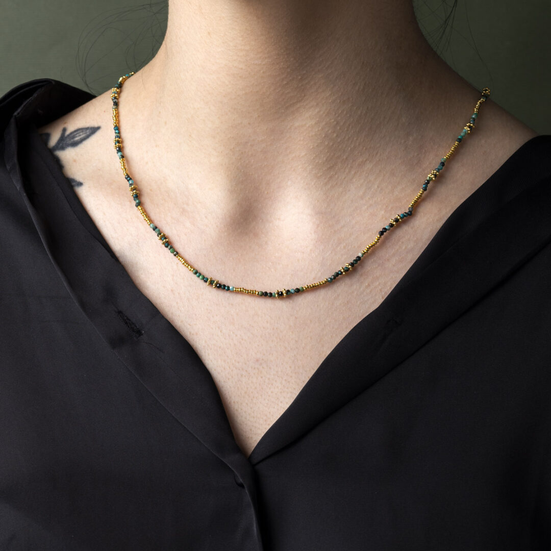 925 Sterling Silver and Gold Plated Necklace with Chrysocolla Beads