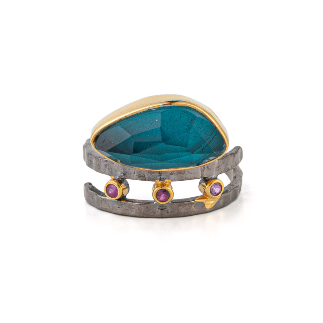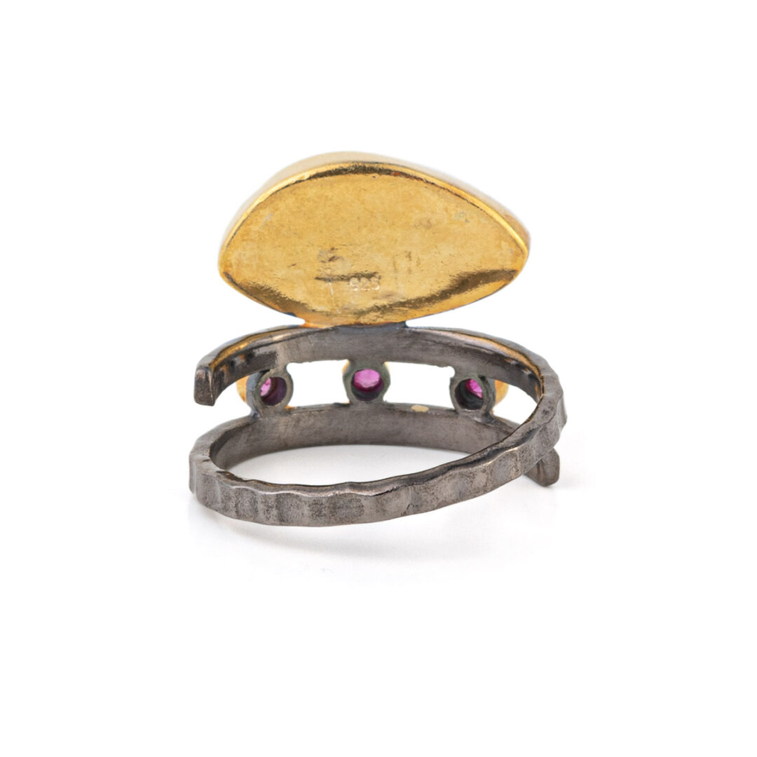 The ring is adjustable. Made of 925⁰ sterling silver and gold plated.