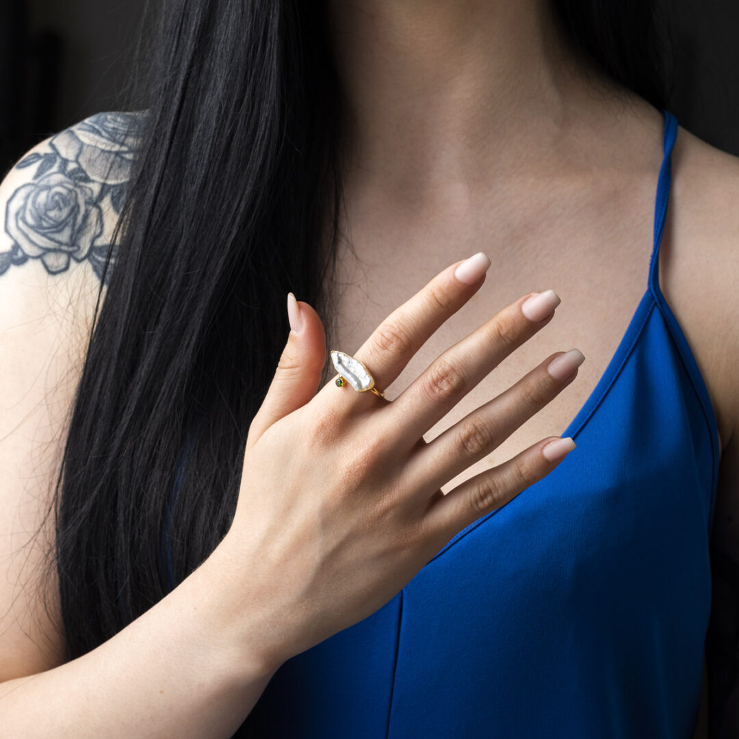 The ring is adjustable. Made of 925⁰ sterling silver and gold plated.