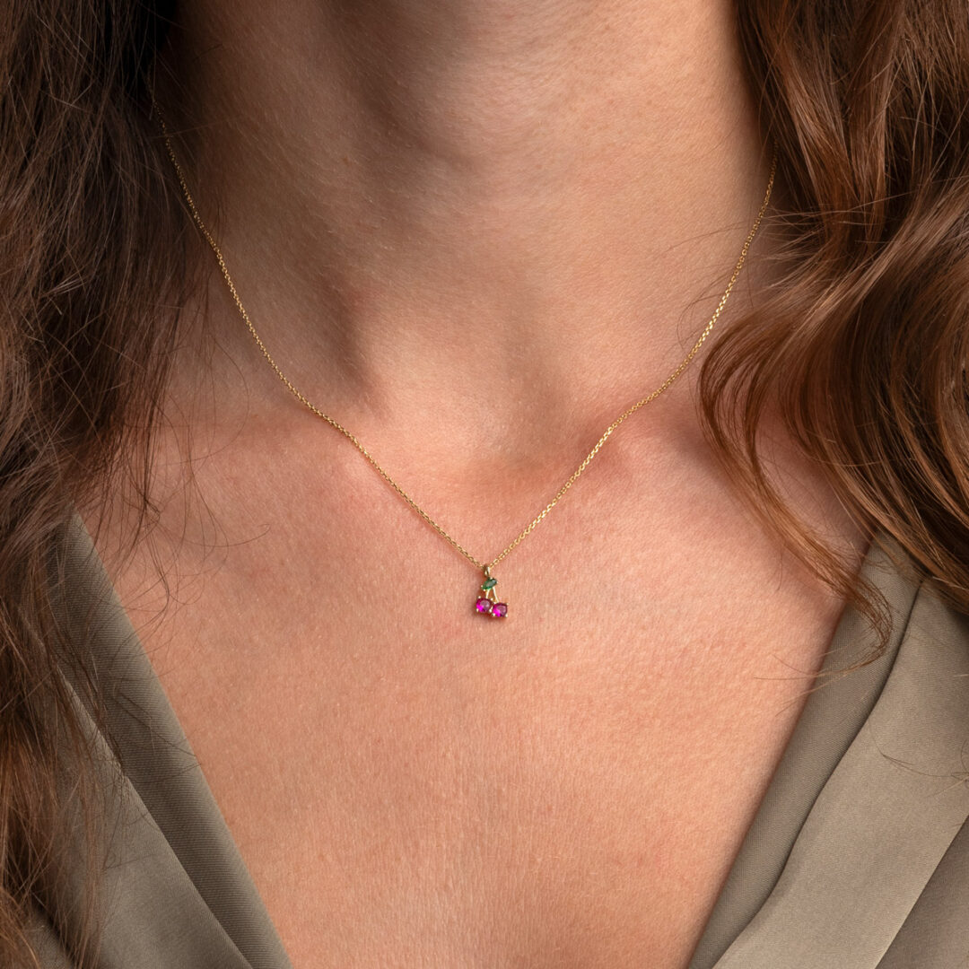 Add a touch of sparkle to your little ones with this 9K gold cherry necklace, featuring shiny zircons cherry pendant. Perfect for everyday wear or special occasions, this adorable children’s necklace makes a thoughtful gift for birthdays, holidays, or any special moment. Hypoallergenic, lightweight, and safe for young kids, it’s a fun and charming accessory that adds a pop of color and sparkle to any outfit.