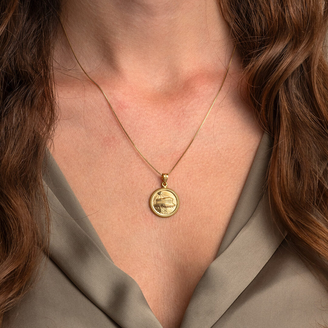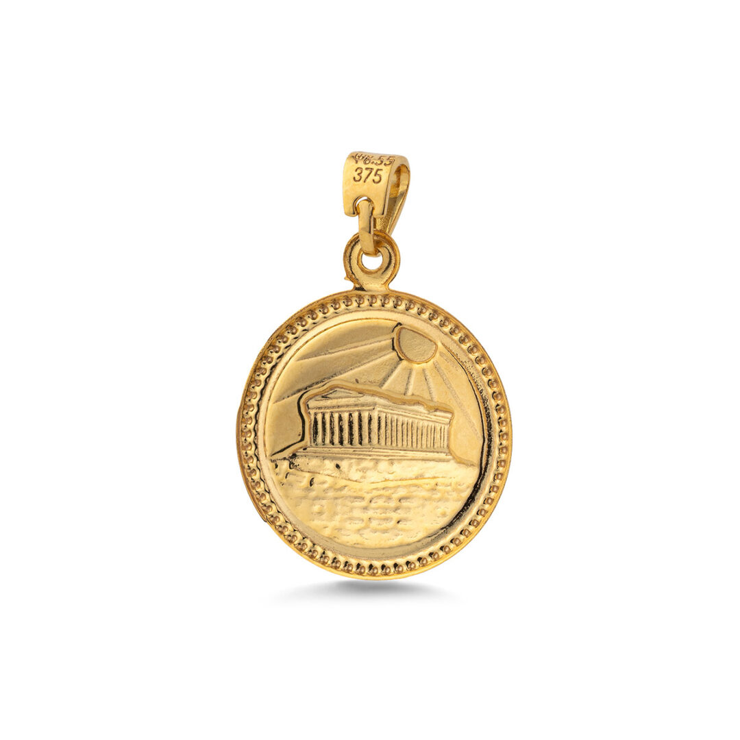 Yellow gold charm depicts the monument of the Parthenon, the main monument in Acropolis. Built in honor of the goddess Athena, and is the brightest monument of the Athenian.