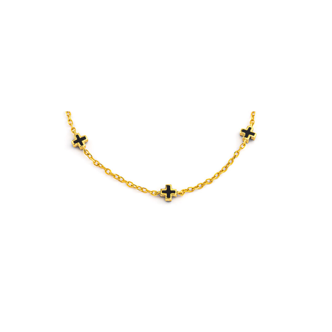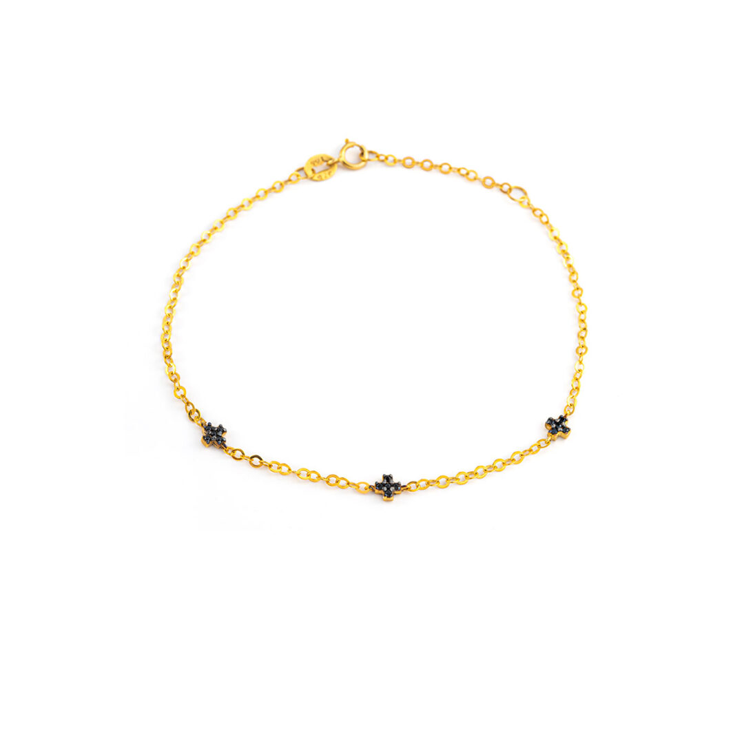 9K Yellow Gold Black Enamel Crosses Bracelet