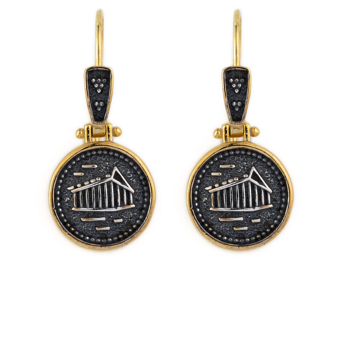Earrings depicts the monument of the Parthenon the main monument in Acropolis. Built in honor of the goddess Athena, and is the brightest monument of the Athenian state.