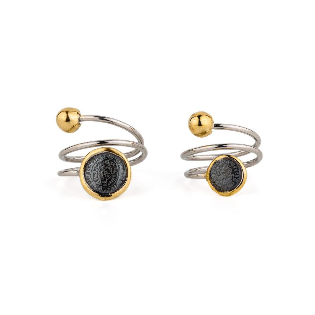 Adjustable Phaistos Disc Ring – Sterling Silver Gold Plated