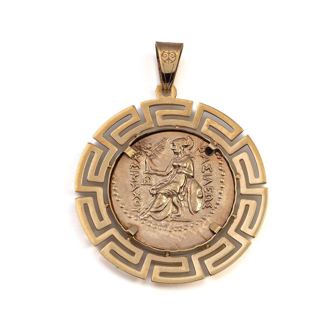 Alexander the Great 14K Gold Coin Pendant Meander Bezel