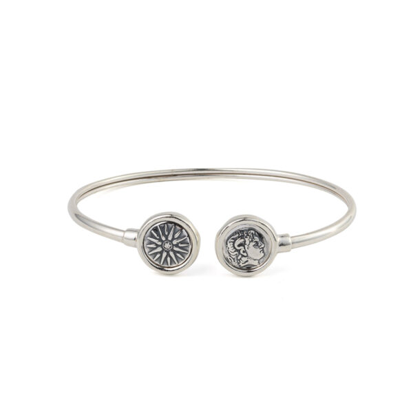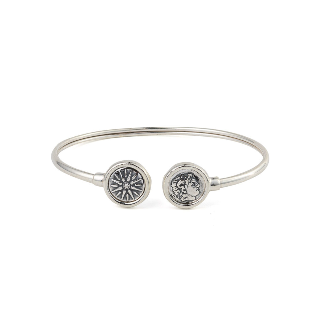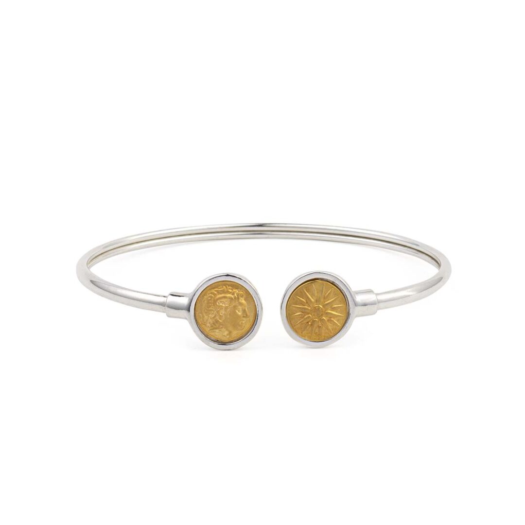 Alexander the Great Coin Cuff Bracelet in Sterling Silver
