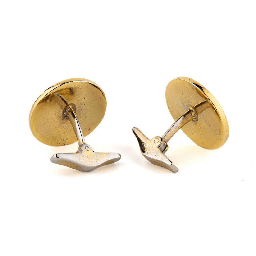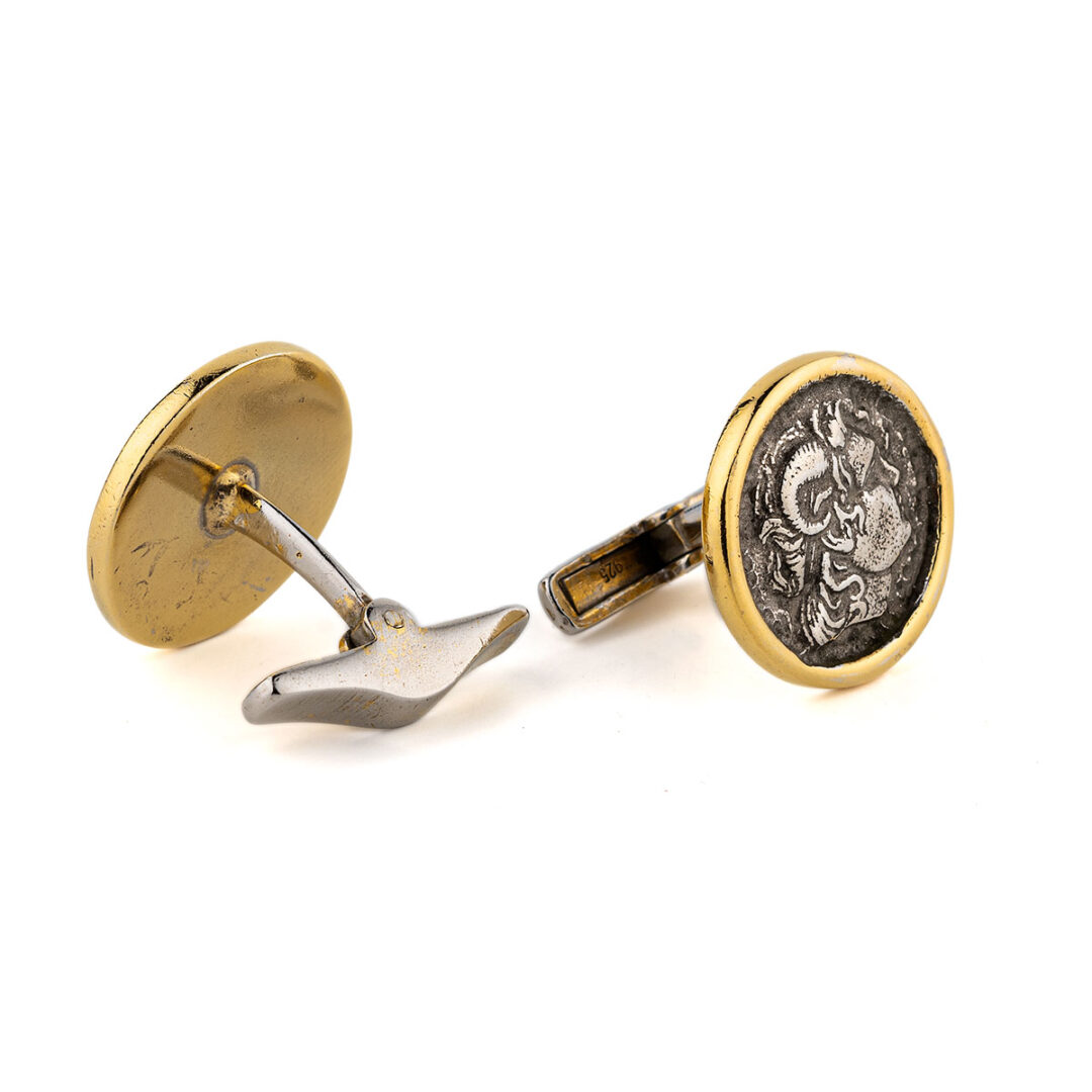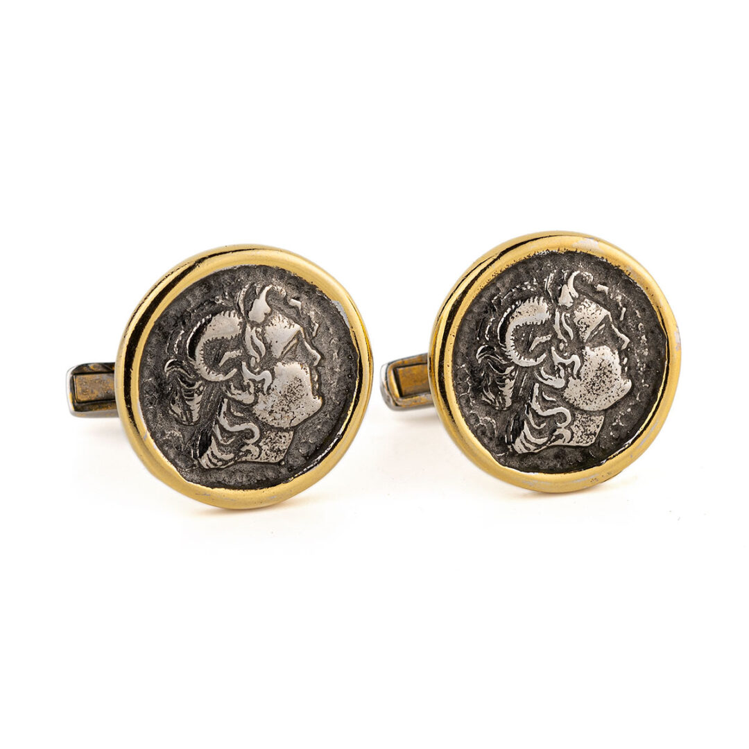 Cufflinks inspired by the Ancient Greek coin of Alexander the great.