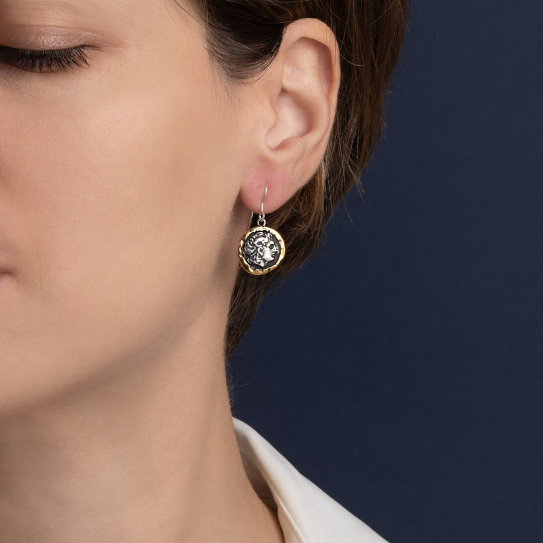 Α beautiful and timeless Coin pair of earrings inspired by the ancient Greek tetradrachm coin of Alexander the Great.