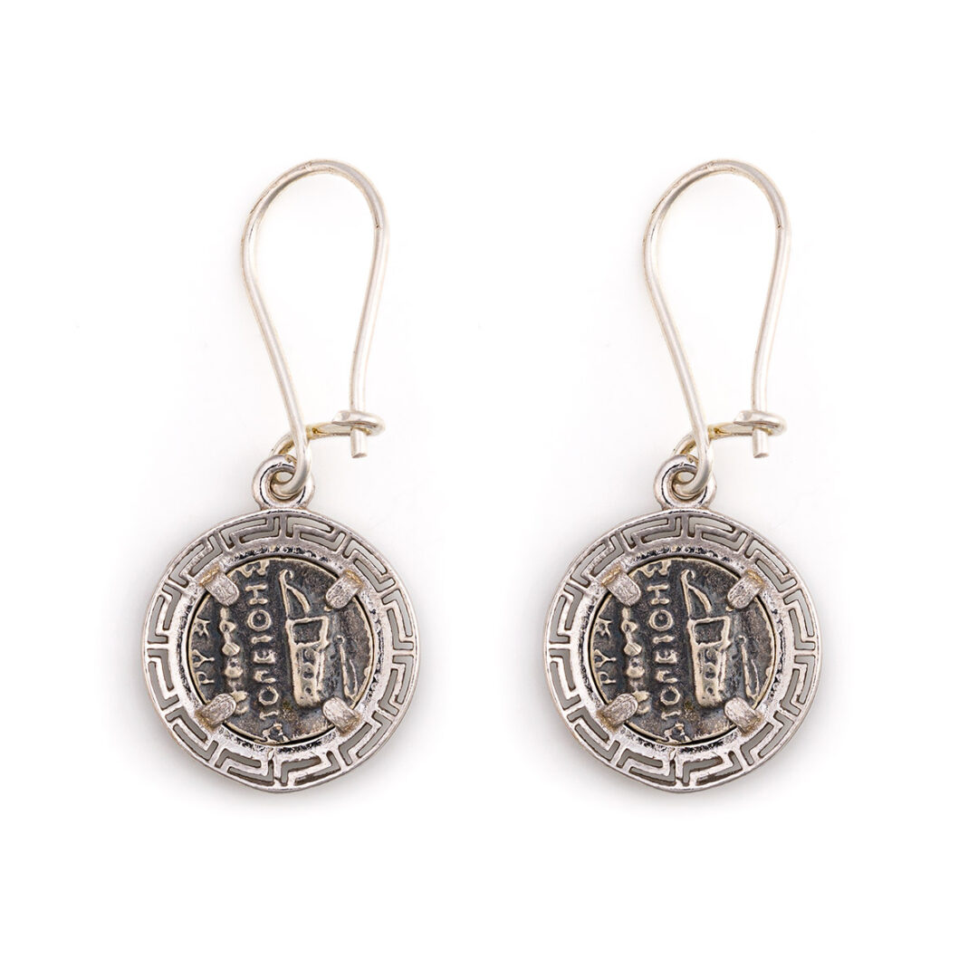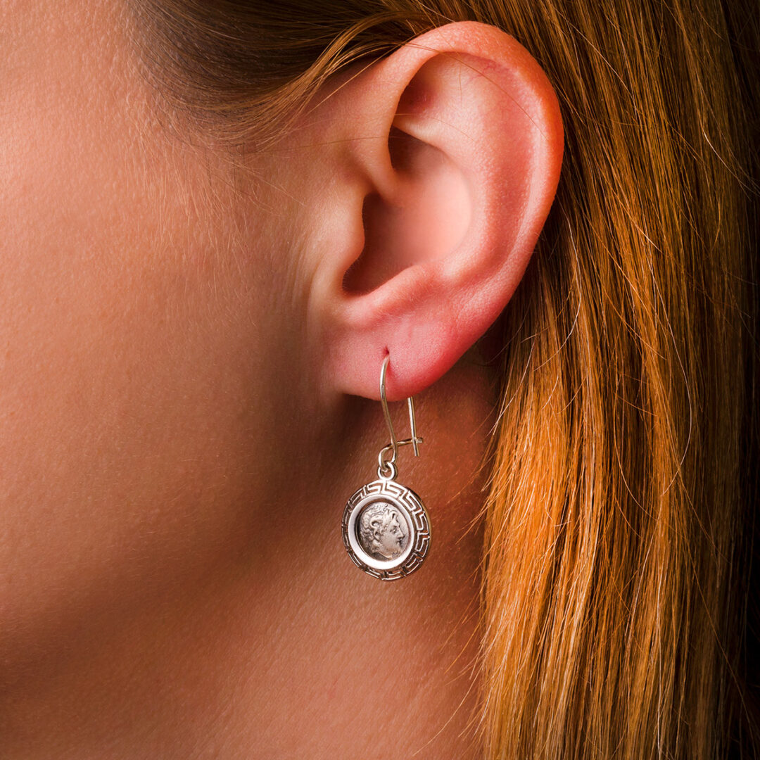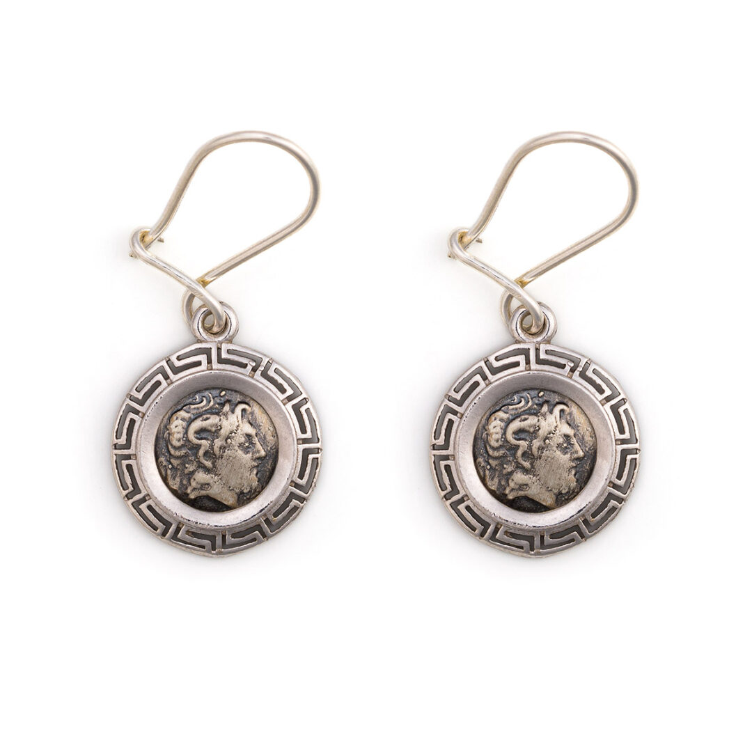 Α beautiful and timeless Coin pair of earrings inspired by the ancient Greek tetradrachm coin of Alexander the Great.