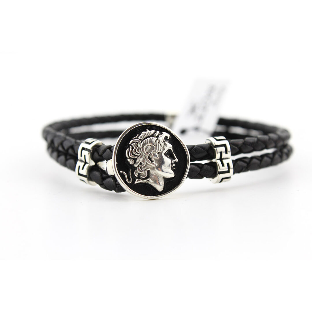 Alexander the Great Leather Bracelet – 925 Sterling Silver