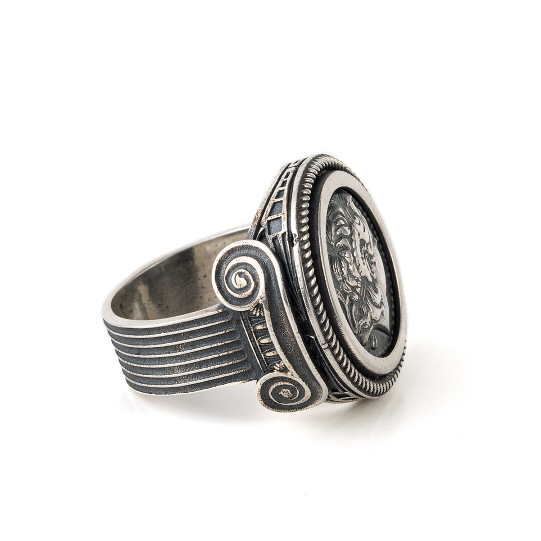 This ring features the traditional Greek Drachma with the portrait of Alexander the Great.
