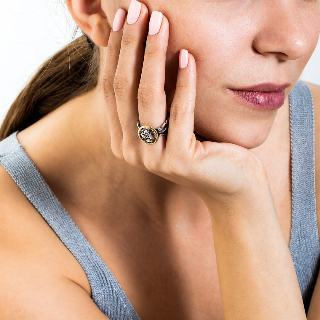 Ring inspired by the Ancient Greek coin of Alexander the Great.