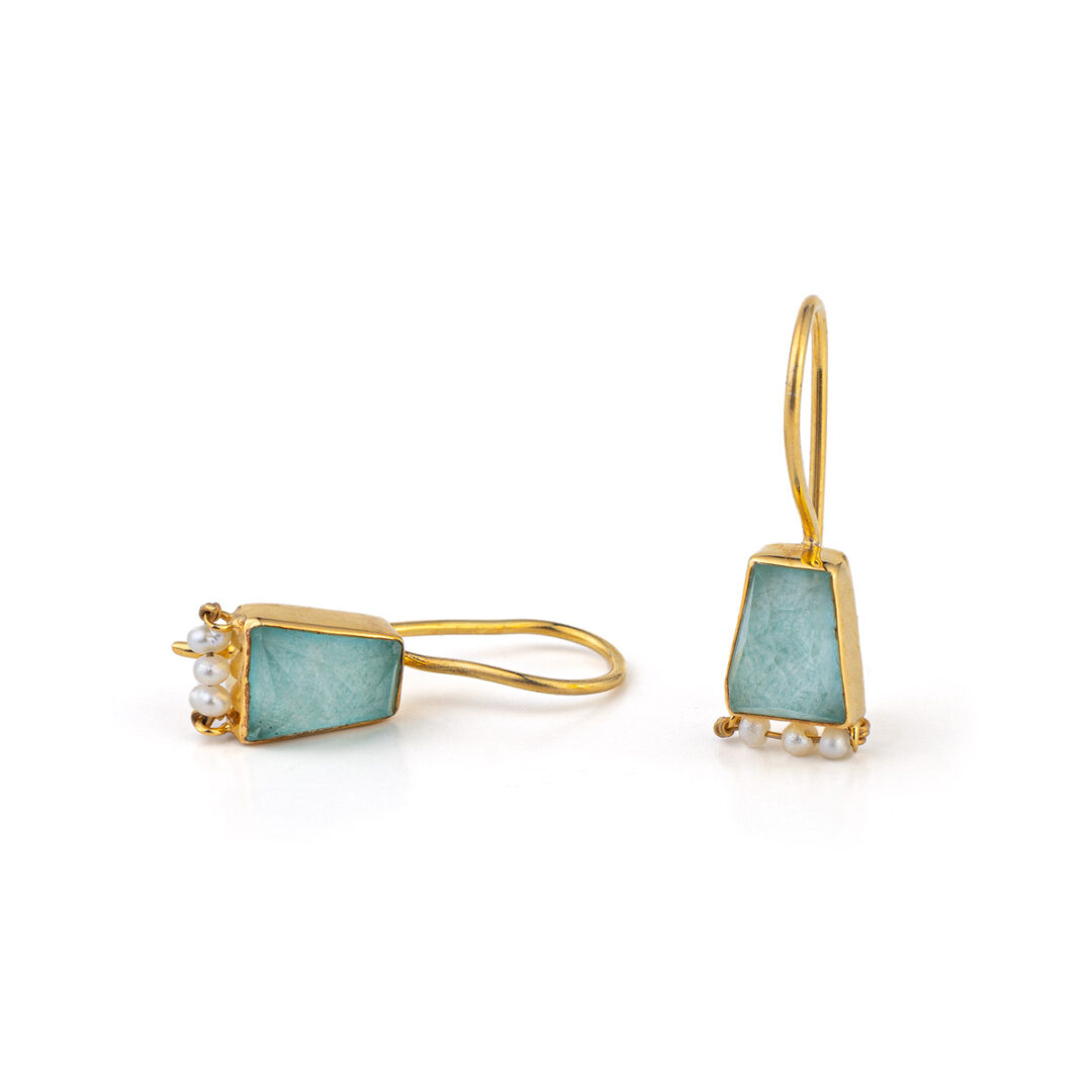 Amazonite and Pearl Earrings – 925 Sterling Silver and Gold Plated
