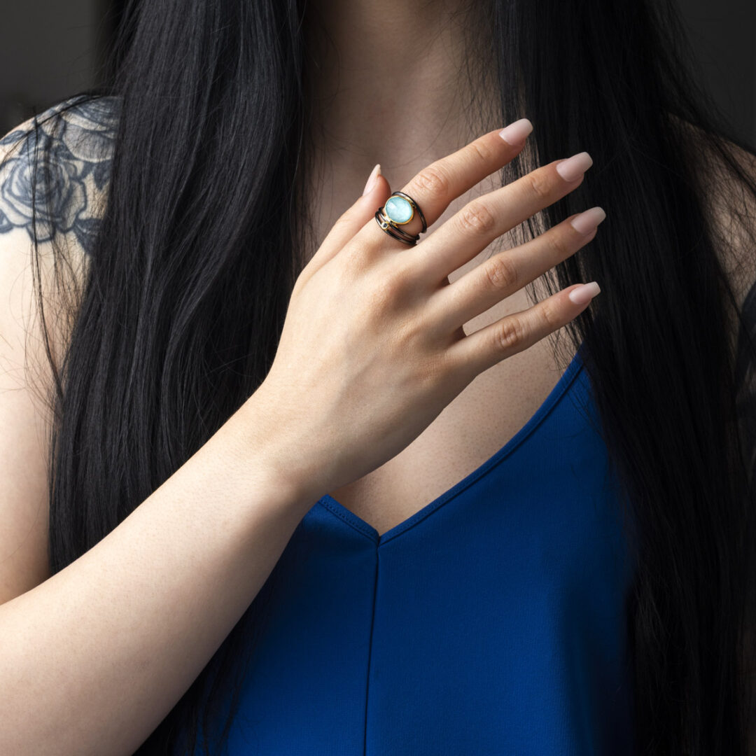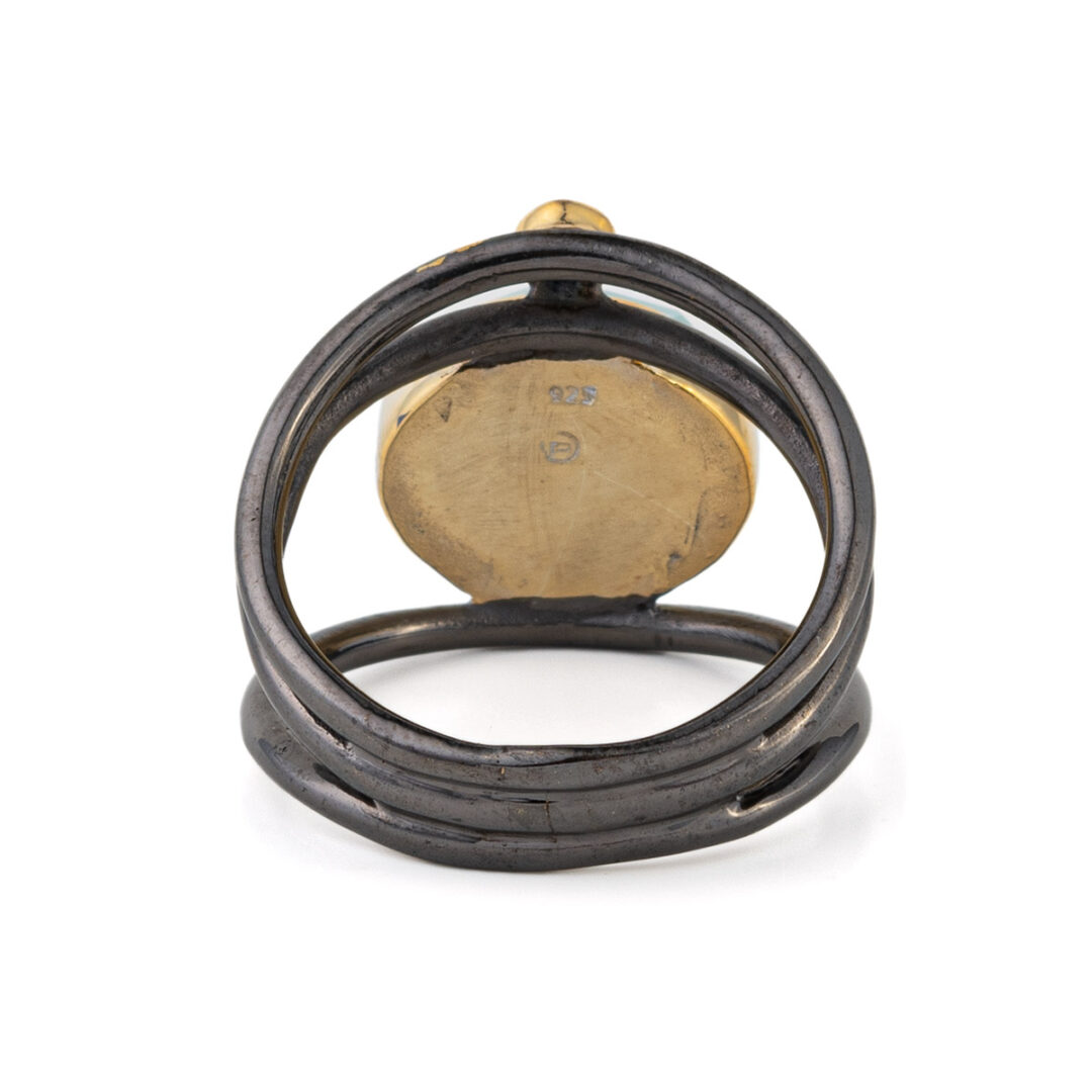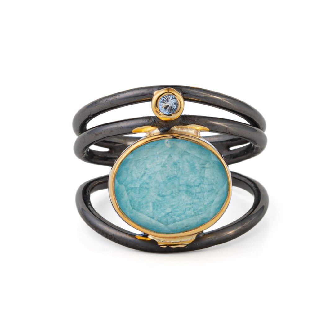 Amazonite and Zircon Oxidized Ring – 925 Sterling Silver and Gold Plated