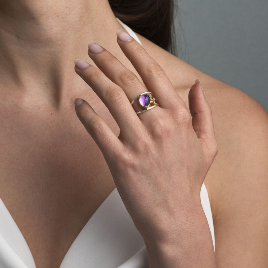 Amethyst Ring in 925 Silver & Gold Plating