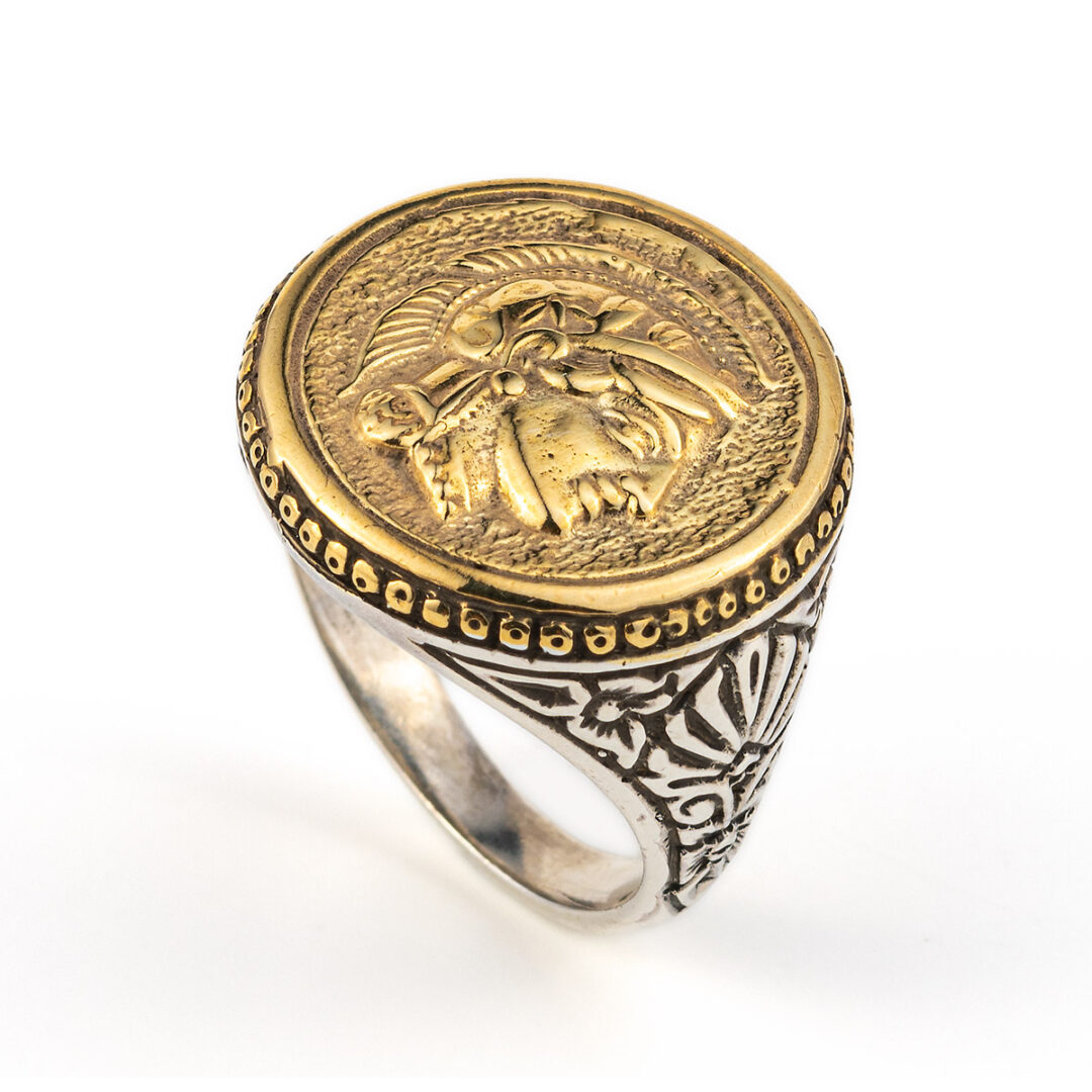 Ancient Greek Coin Goddess Athena Ring – Sterling Silver and Gold Plated