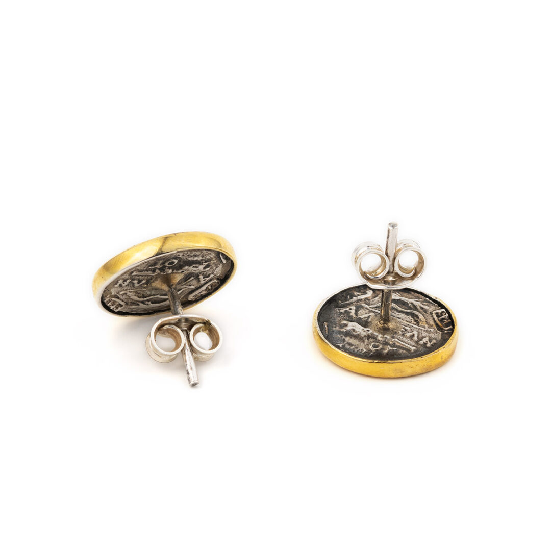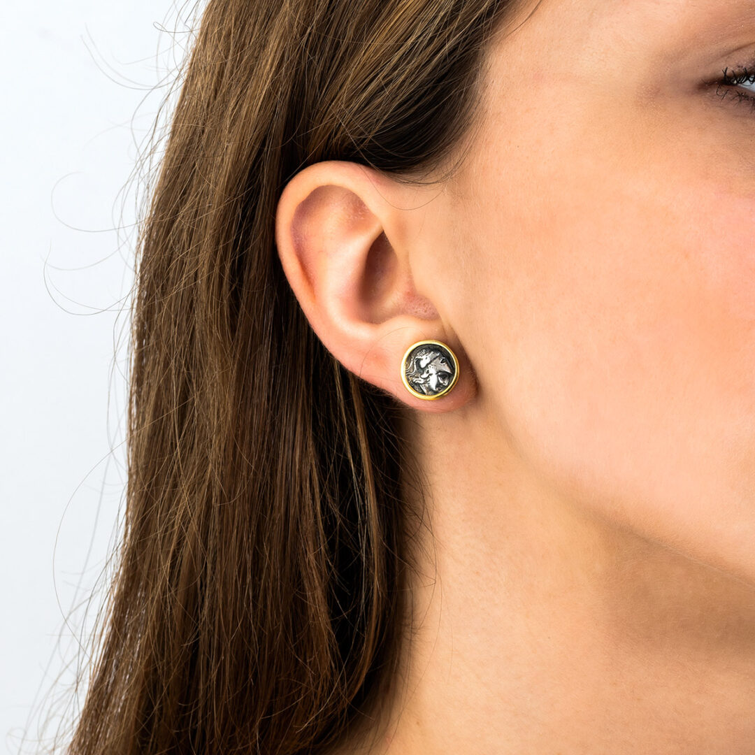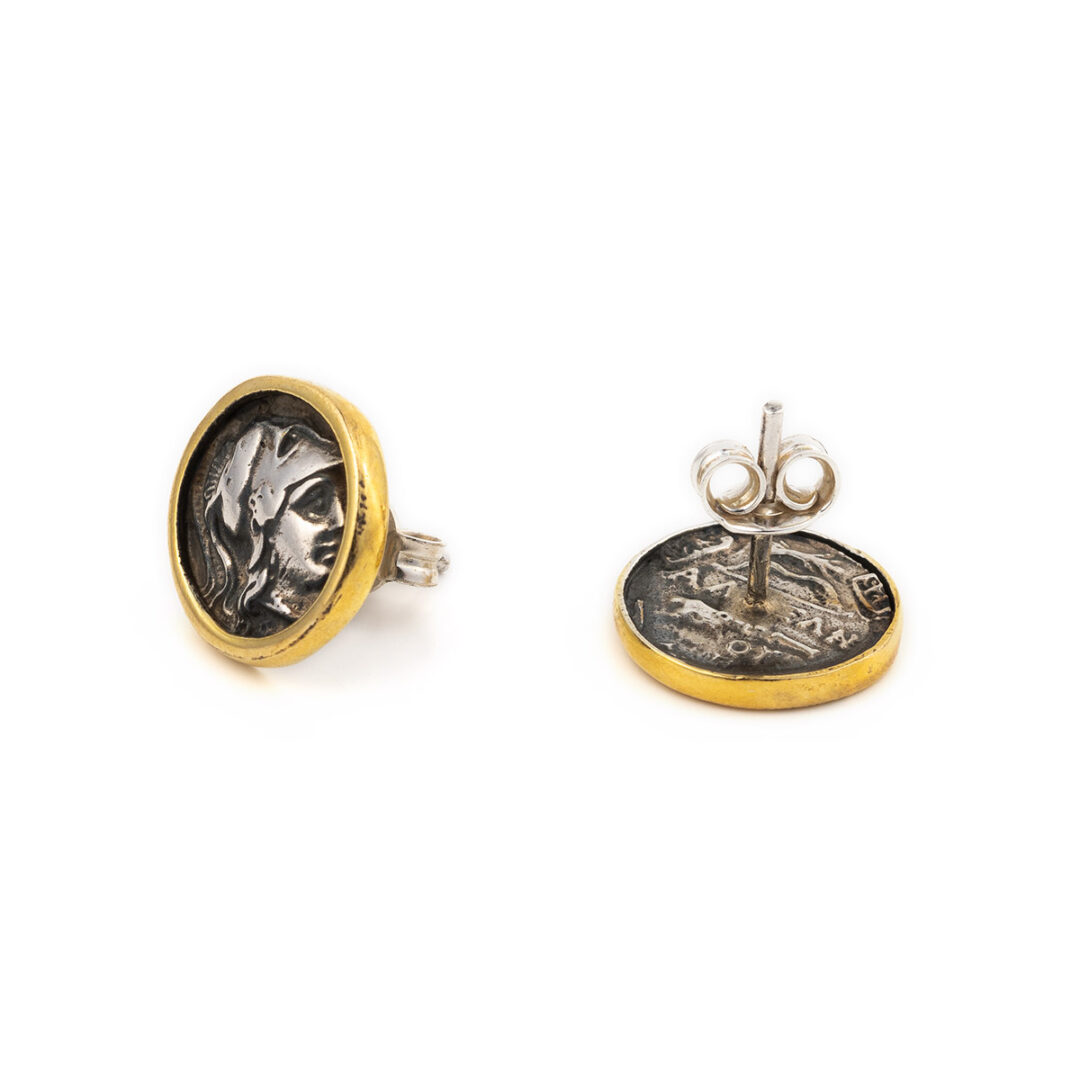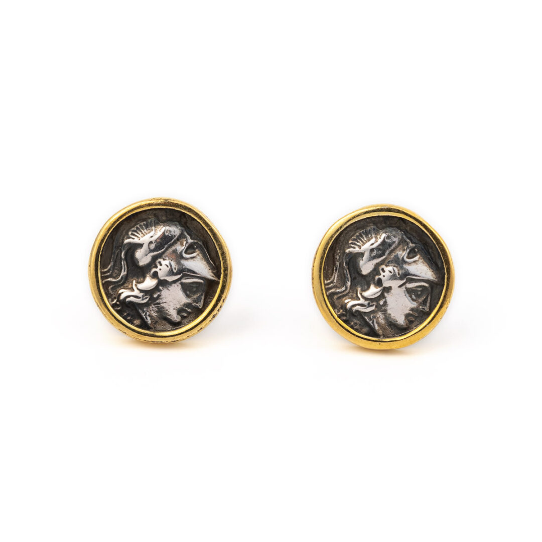 Ancient Greek Goddess Athena Coin Stud Earrings – Sterling Silver and Gold Plated