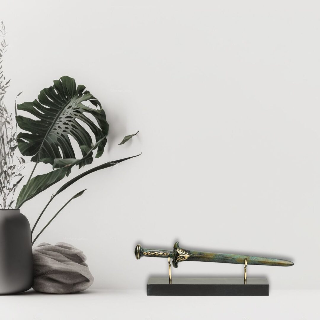 Ancient Spartan Sword on Marble Base – Bronze