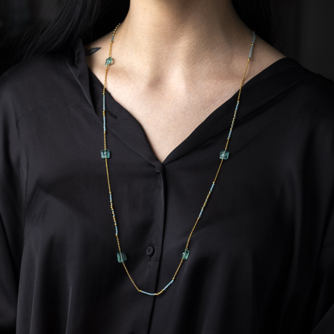 Apatite Gemstone Necklace – 925 Sterling Silver and Gold Plated