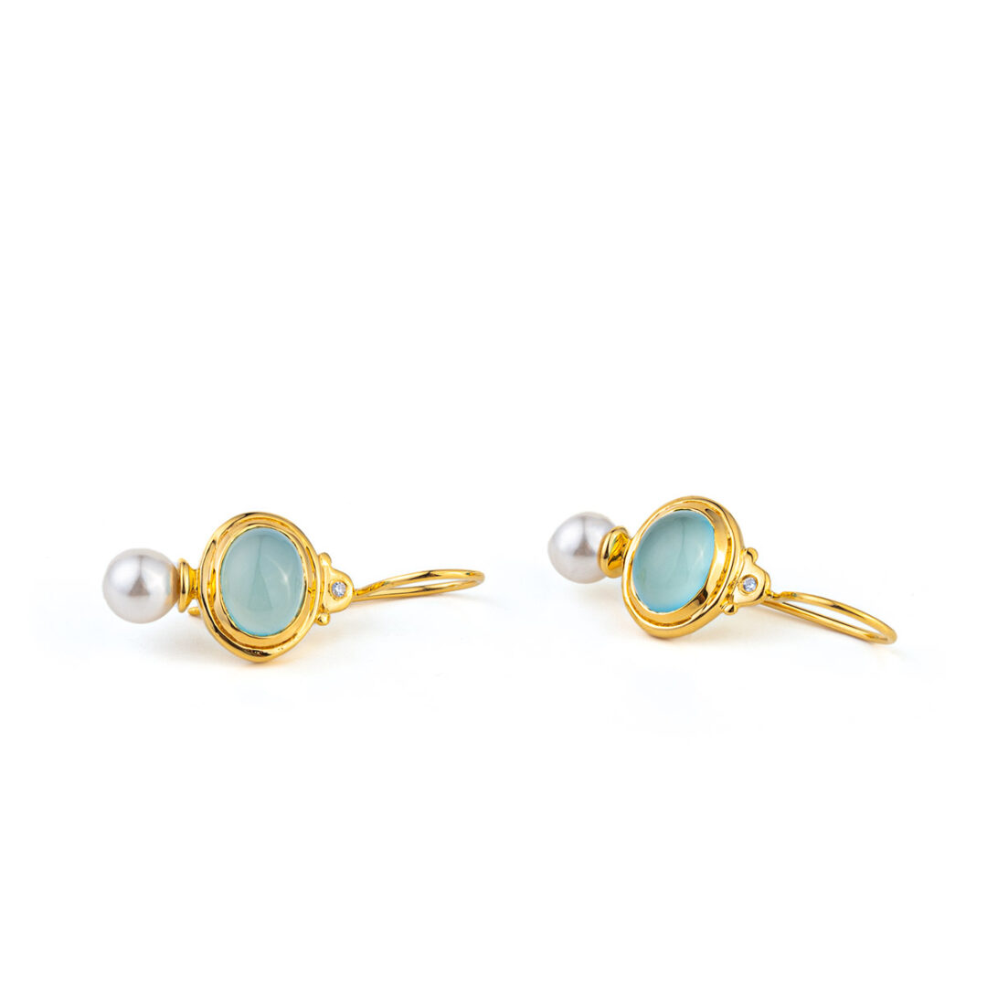 Aqua Chalcedony and Pearl Earrings – 925 Sterling Silver