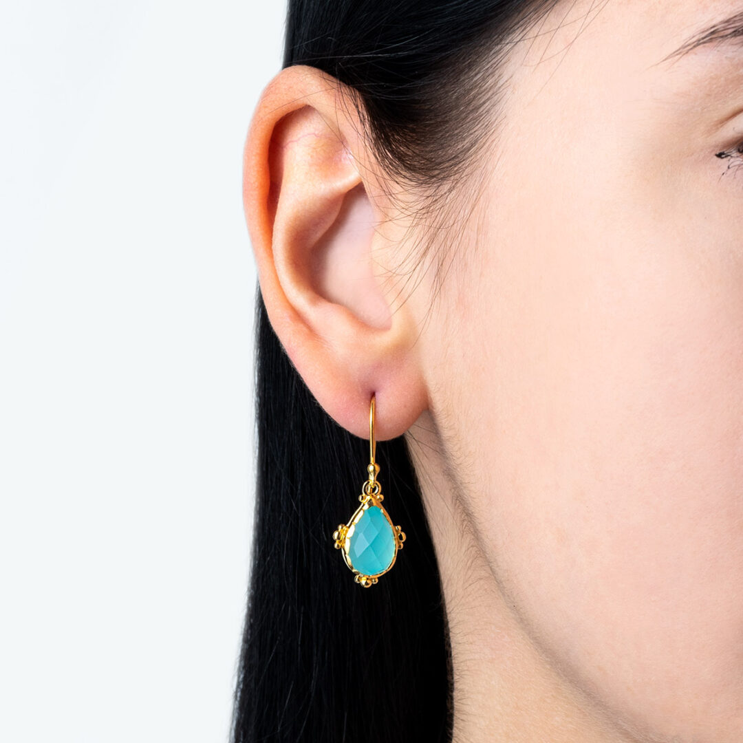 Aqua Chalcedony Hook Earrings – 925 Sterling Silver