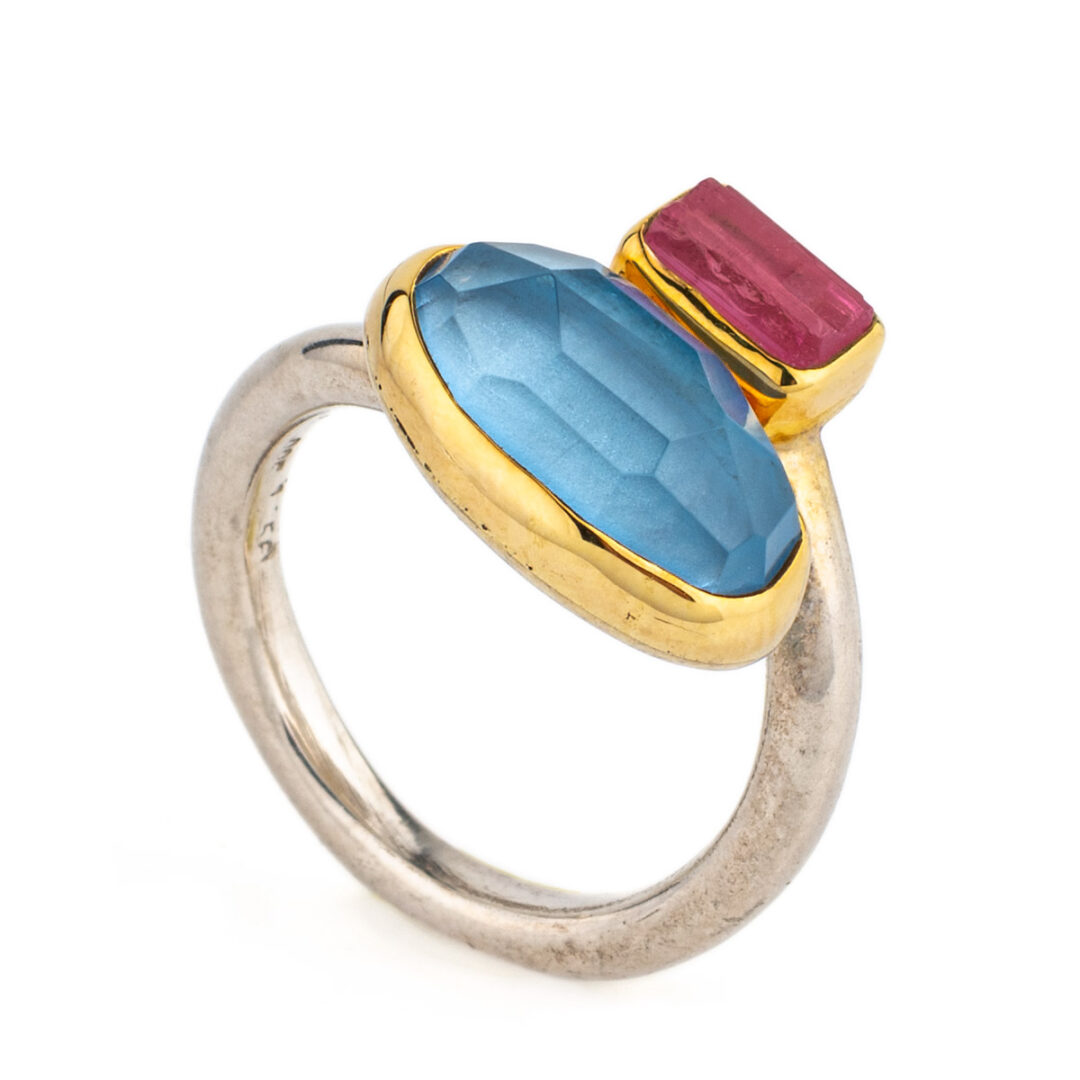 Aqua Marine and Tourmaline Ring – 18K Gold and 925 Sterling Silver