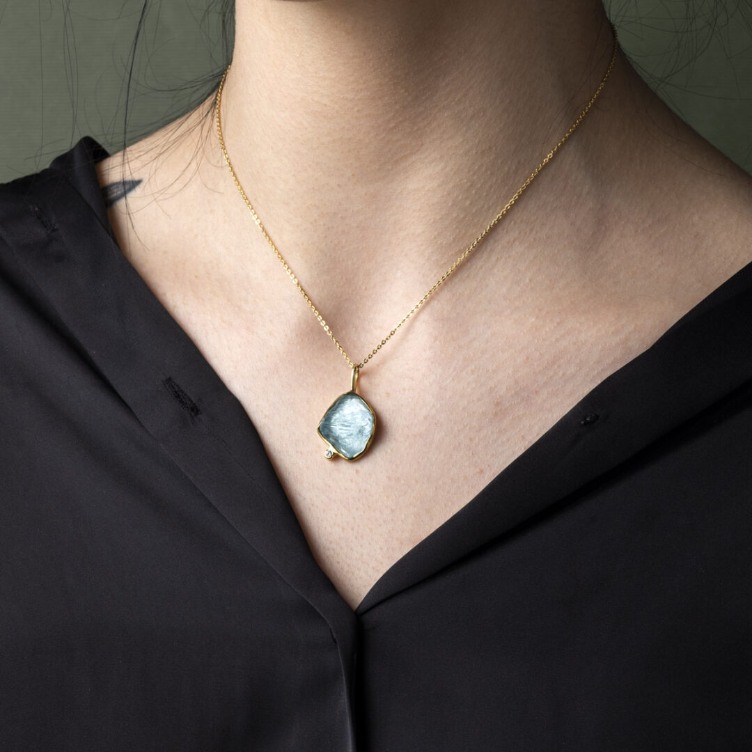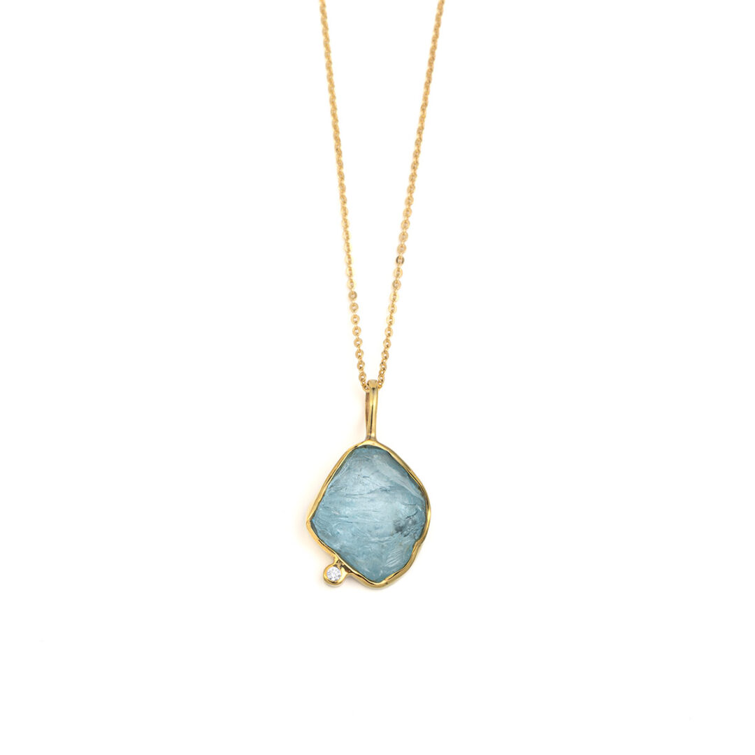 Aqua Marine Necklace – 925 Sterling Silver and Gold Plated