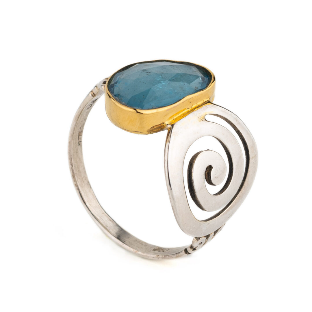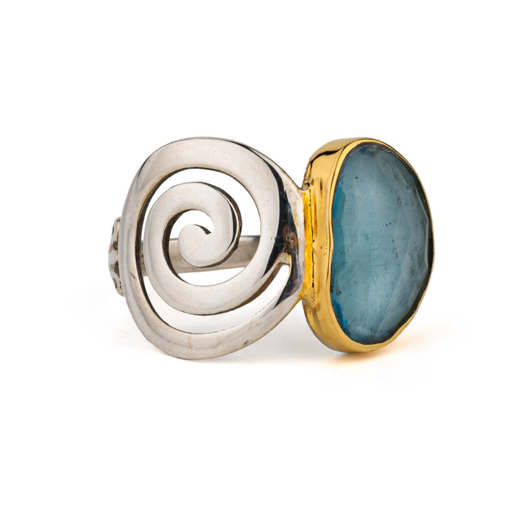 Aqua Marine Spiral Ring – 18K Gold and 925 Sterling Silver