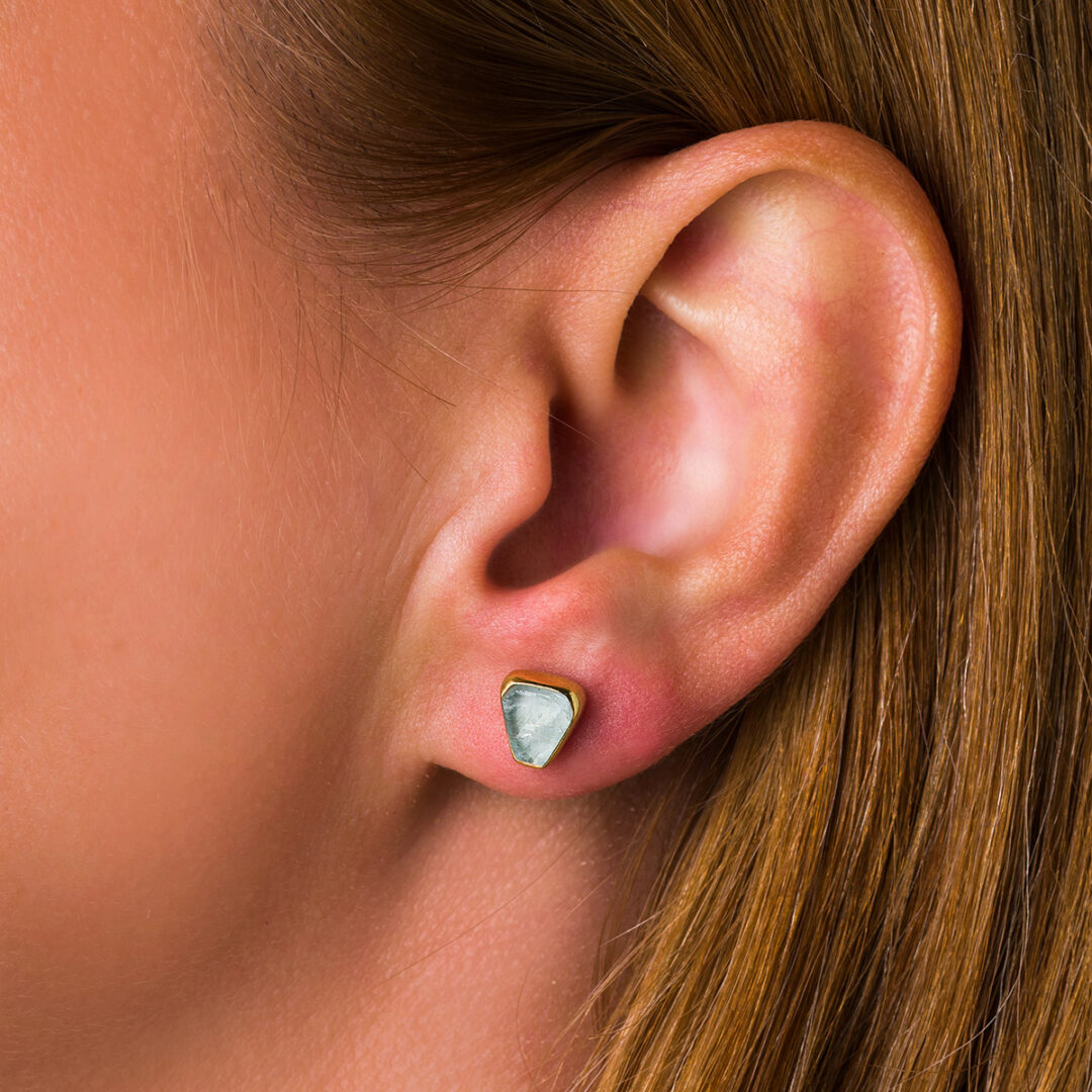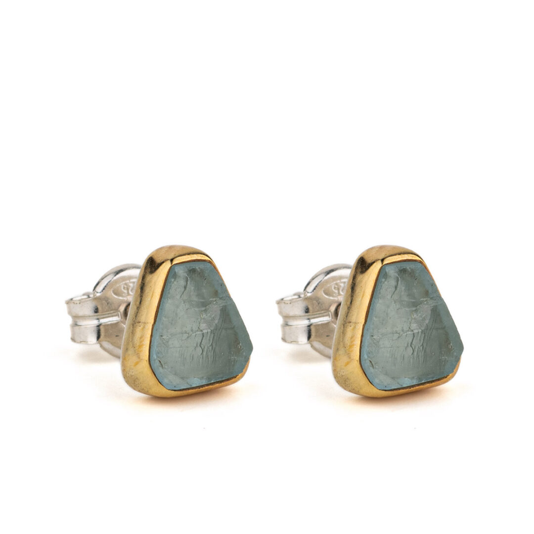 Aqua marine Stud Earrings – 18K Gold and Sterling Silver