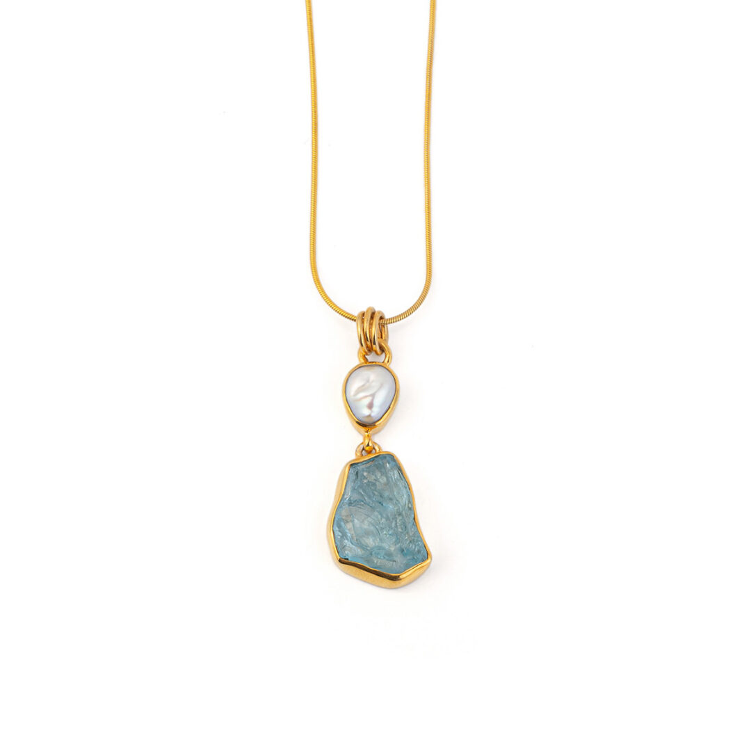 Aquamarine and Pearl Necklace – 925 Sterling Silver and Gold Plated