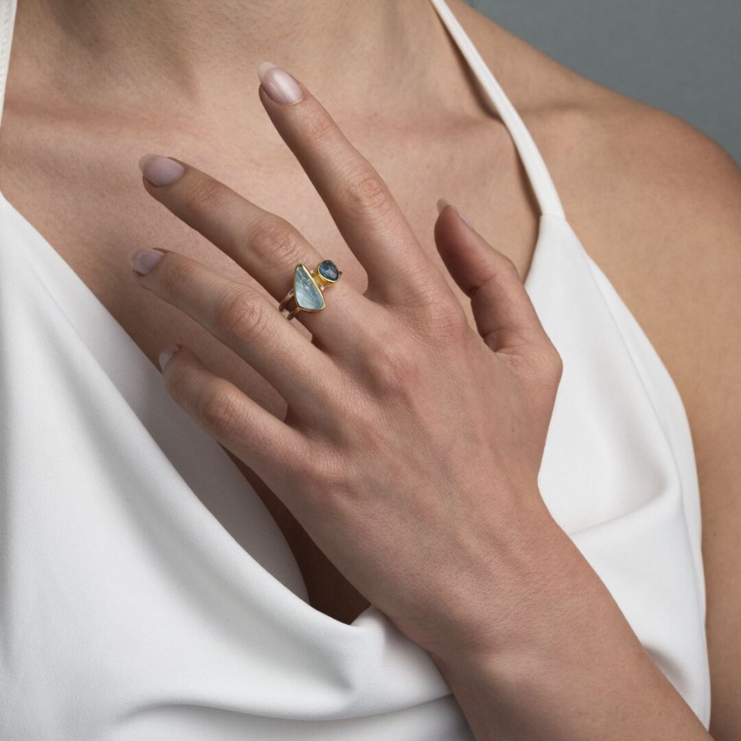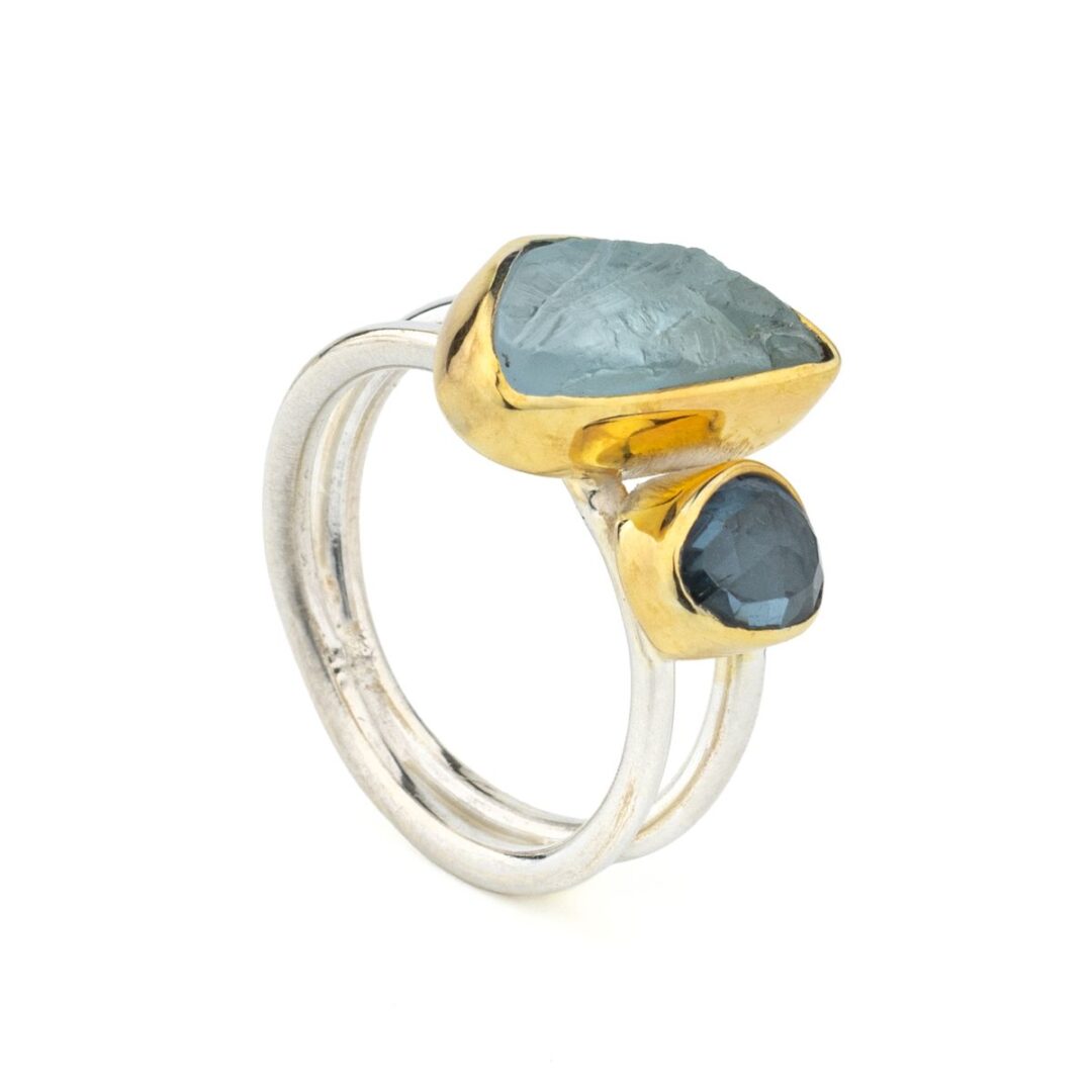 Aquamarine & London Blue Topaz Ring in 925 Silver with Gold Plating