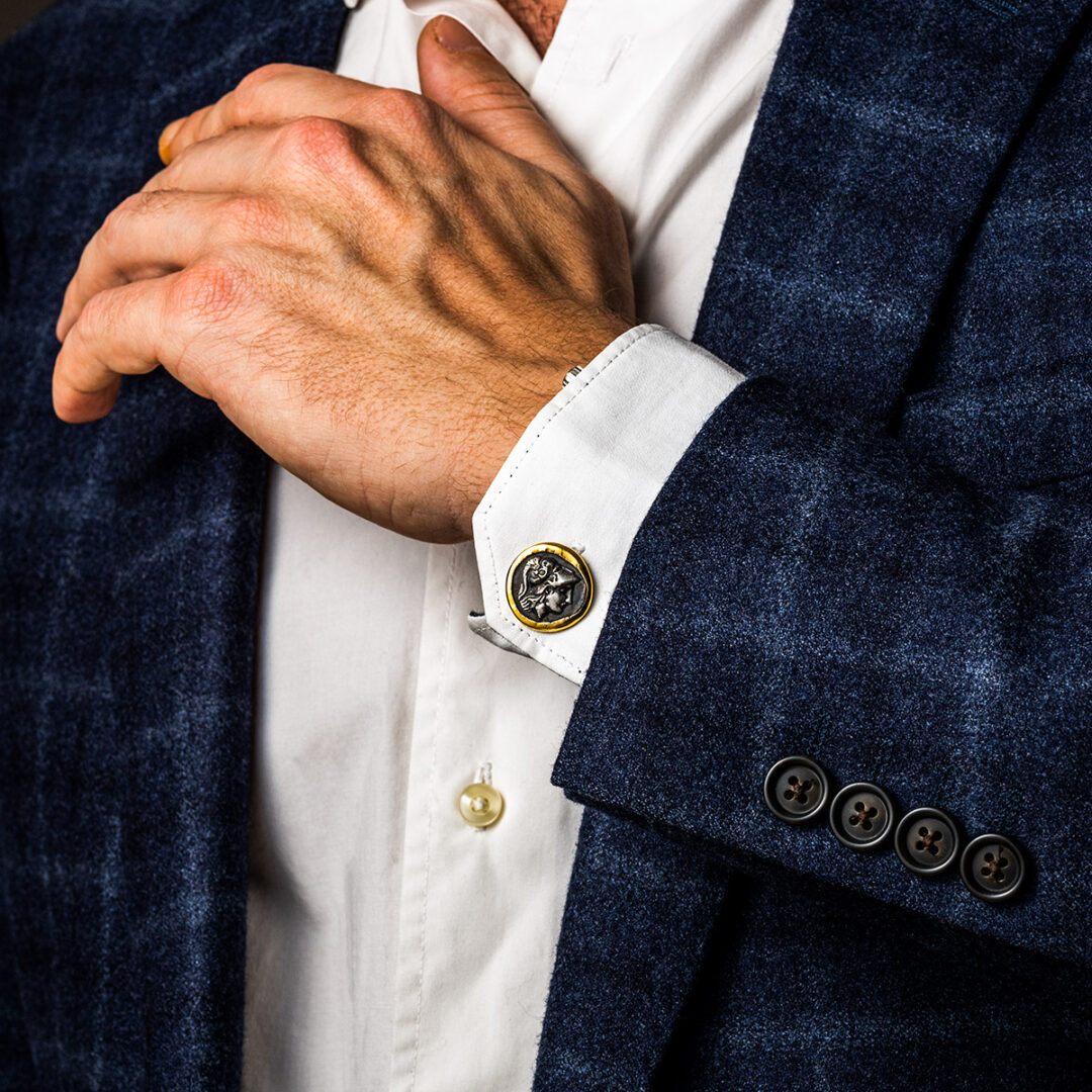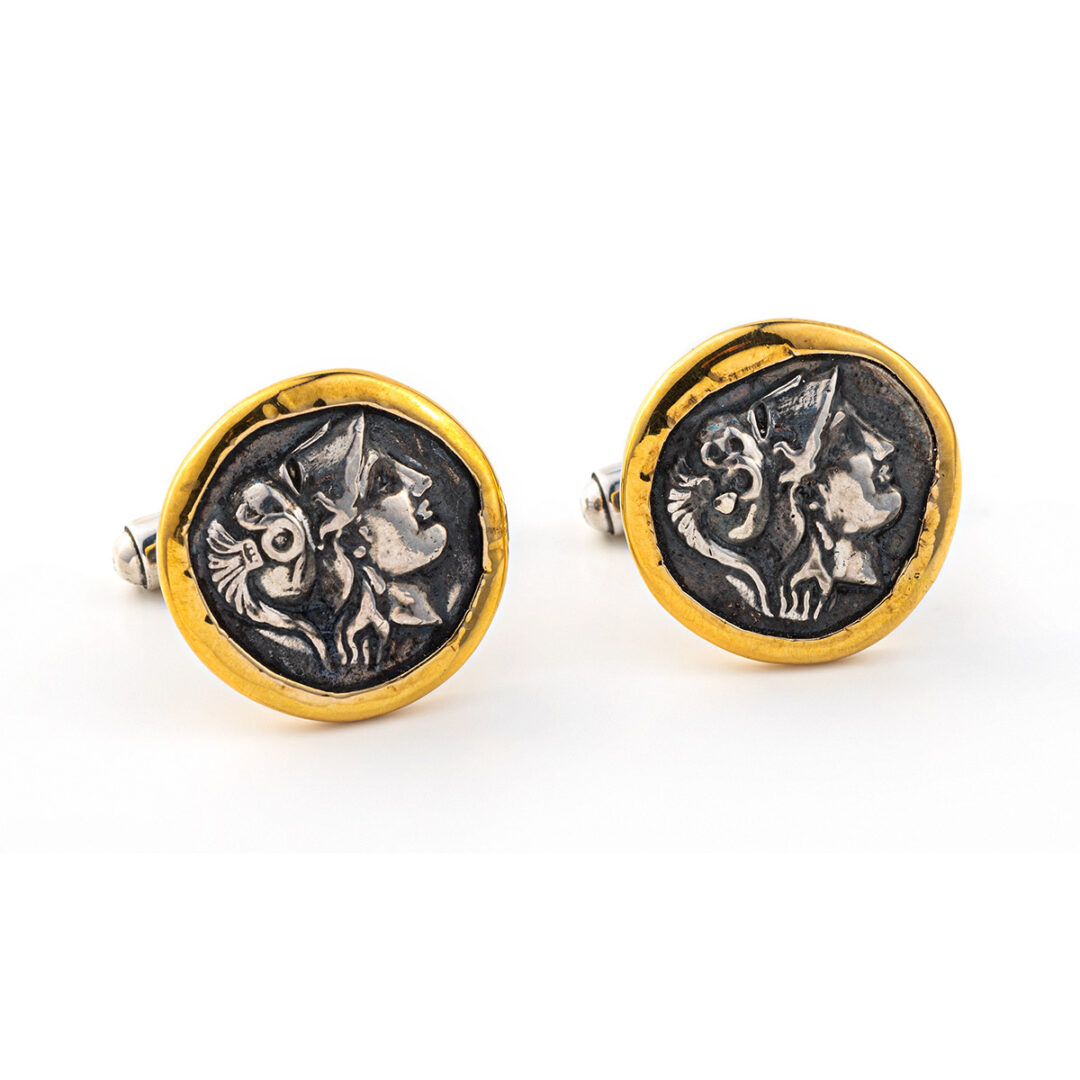 Athena Chalinitis Coin Cufflinks – 14K Gold and 925 Sterling Silver