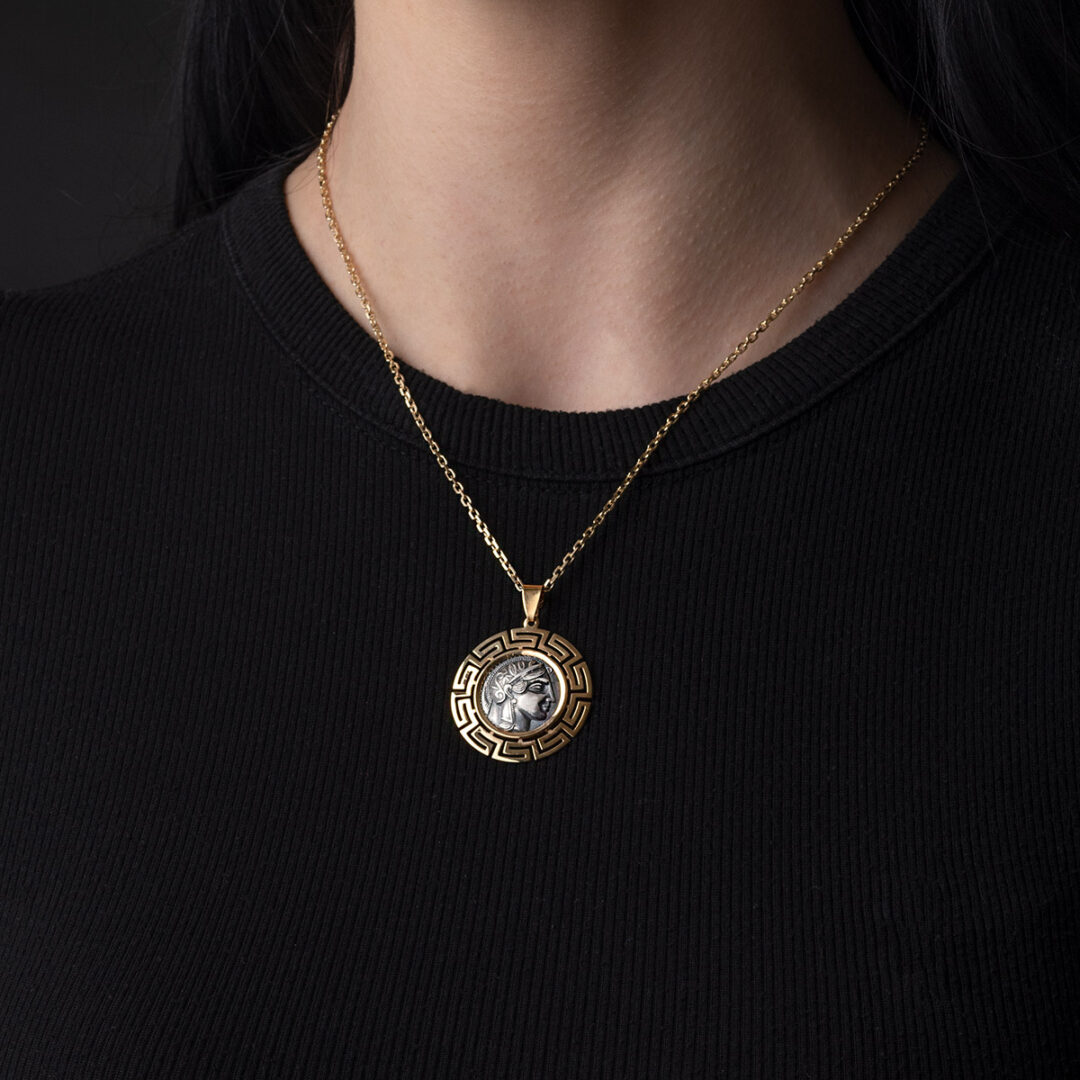 Athena Coin Pendant – 14k Gold and Sterling Silver
