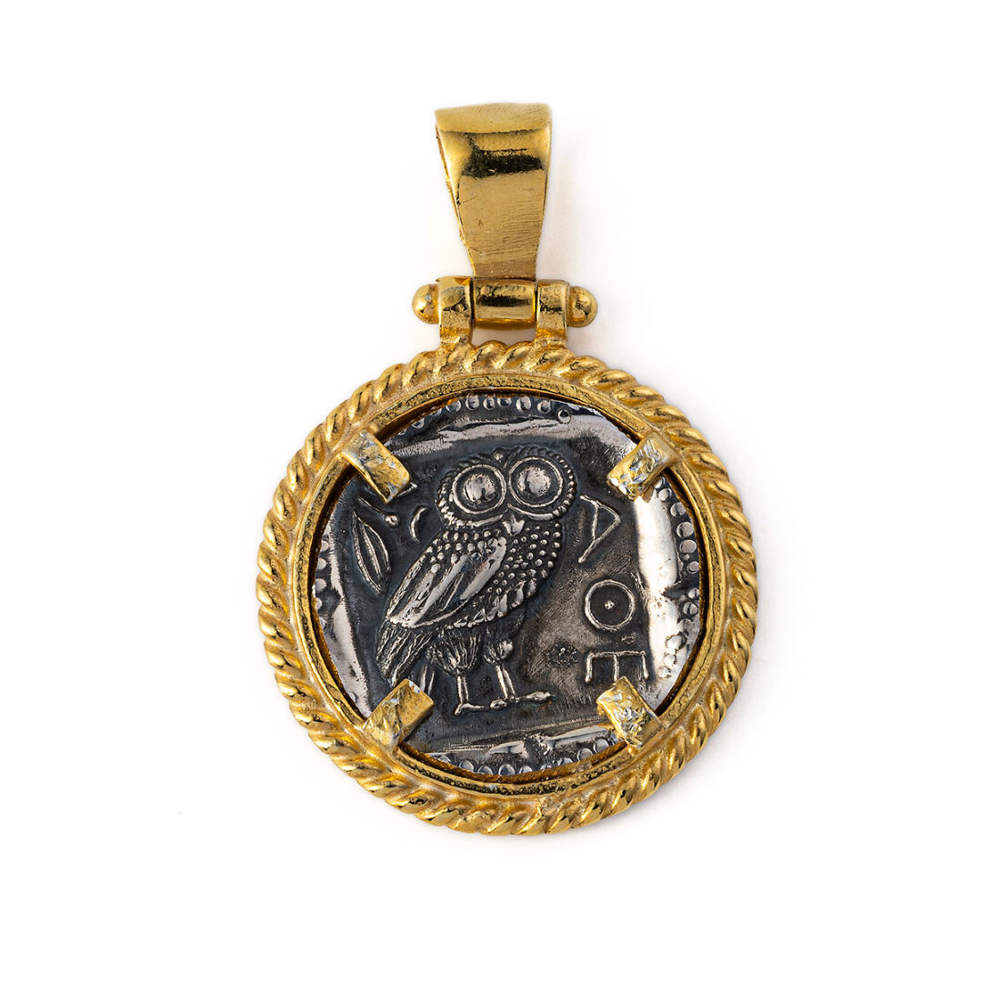 Athena Coin Pendant – 925 Sterling Silver Gold Plated