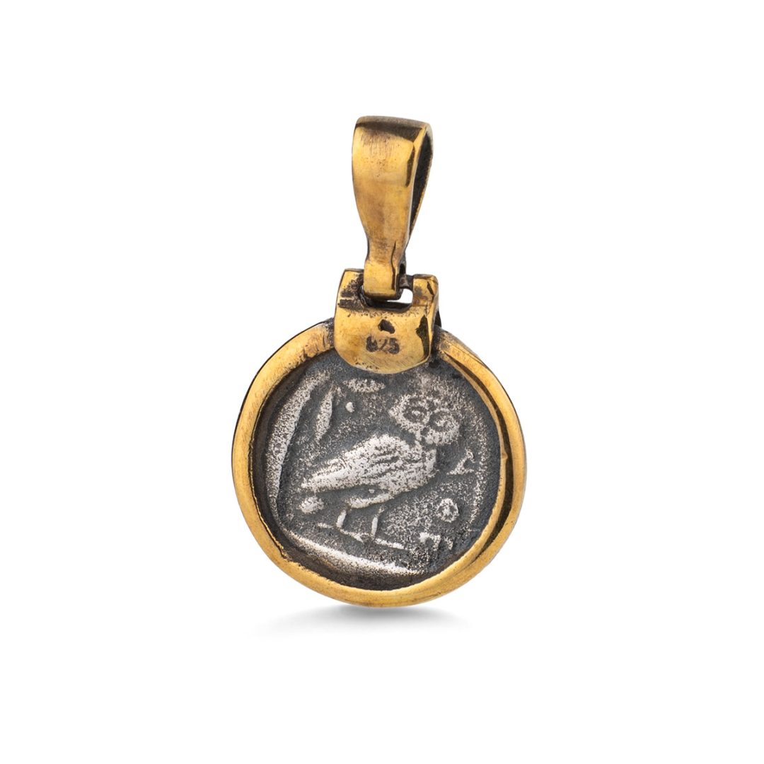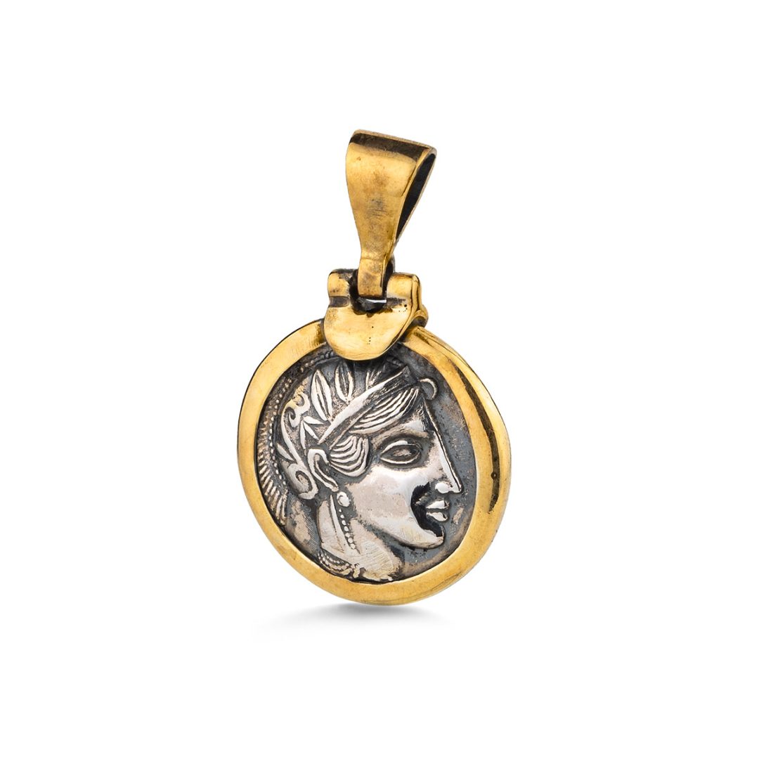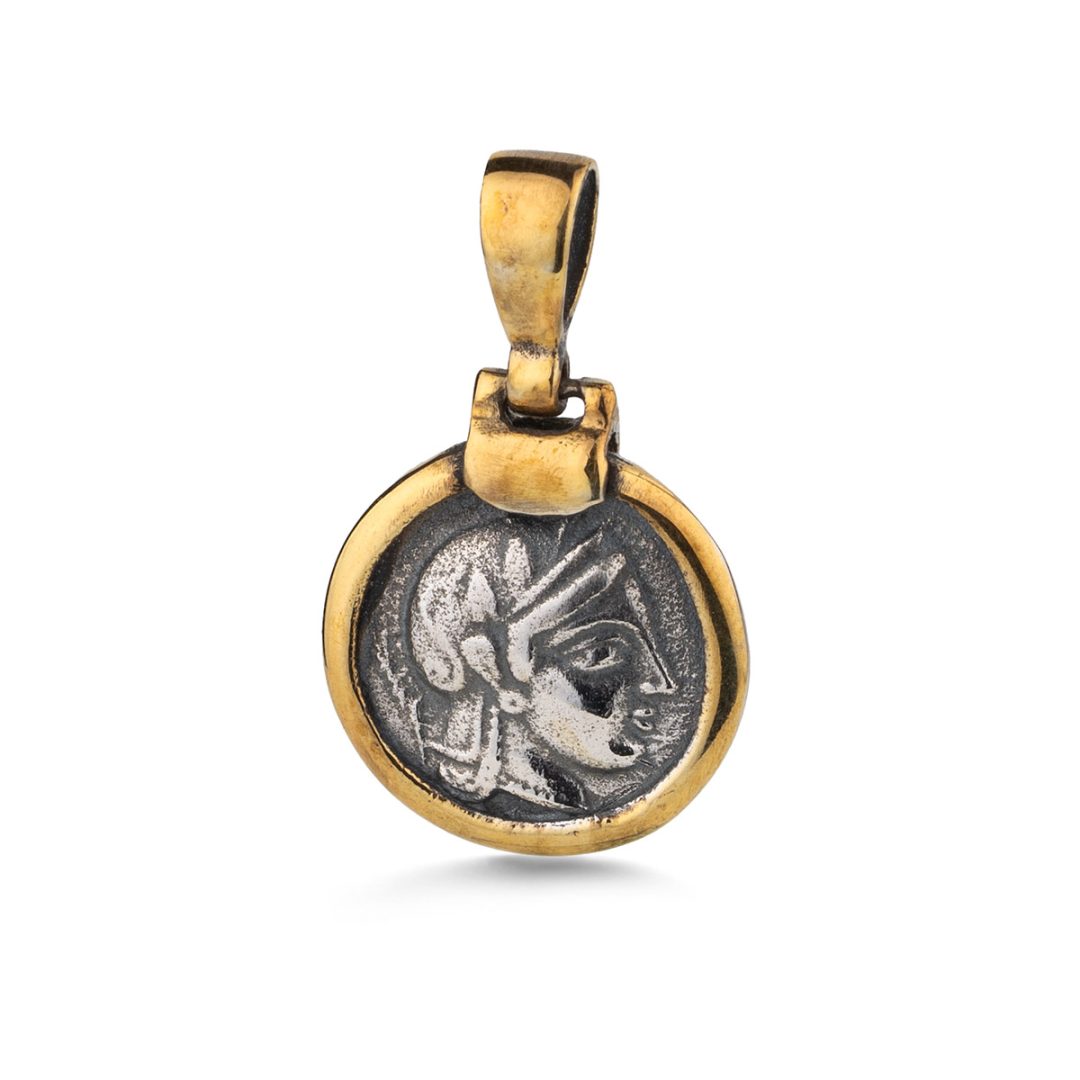 Handmade Athena godess coin pendant. According to greek mythology, Athena was an ancient Greek godess associated with wisdom, handicraft and warfare.