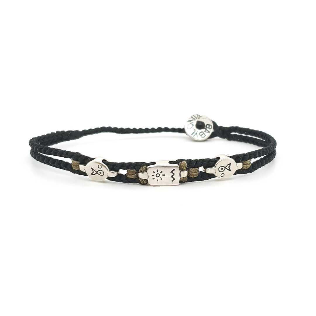 All babylonia jewelry are unisex and customizable in size. The jewels are beautifully packaged in a colored pyramid box and accompanied by a symbol booklet. The parcel includes also instructions on how to adjust the bracelet to the size you want.