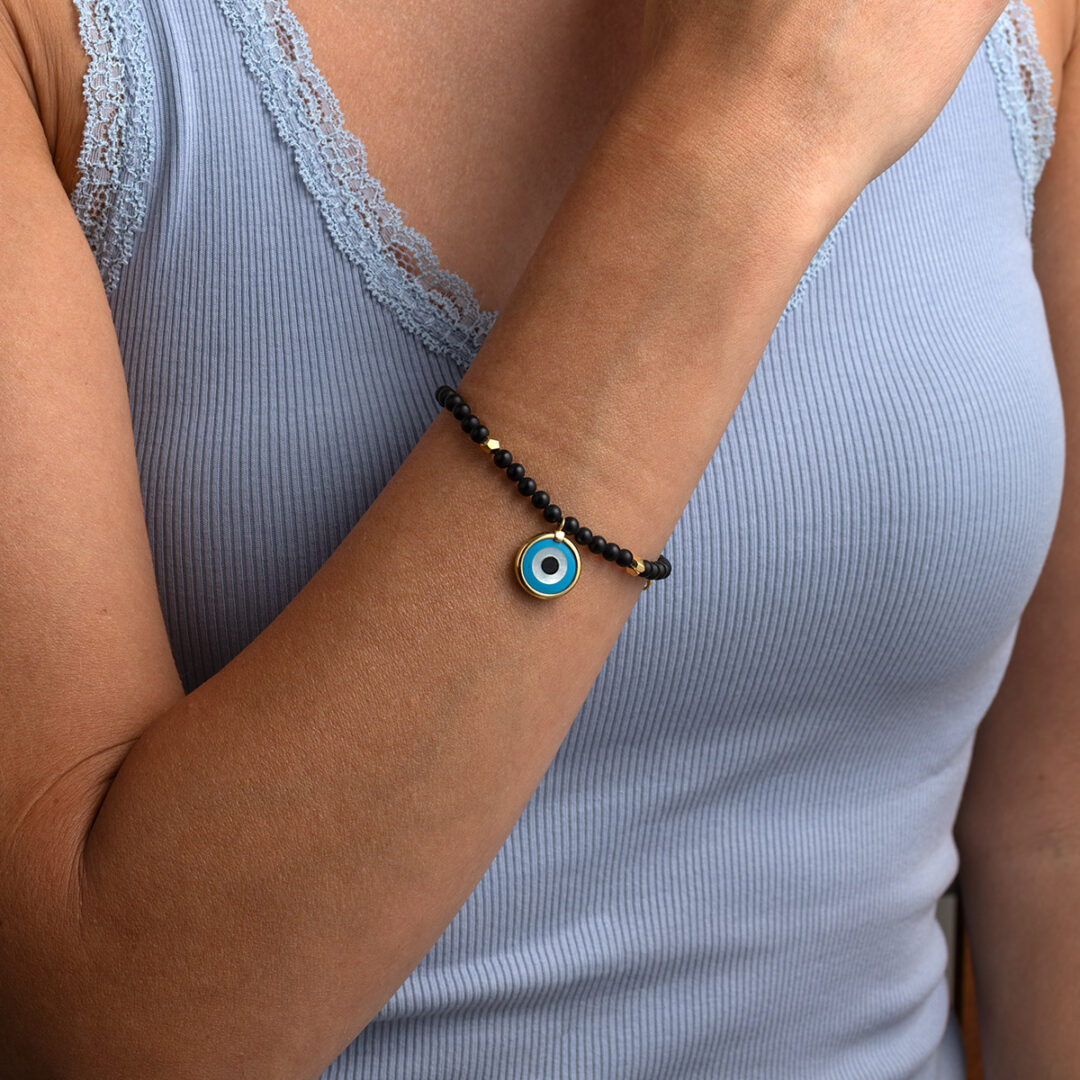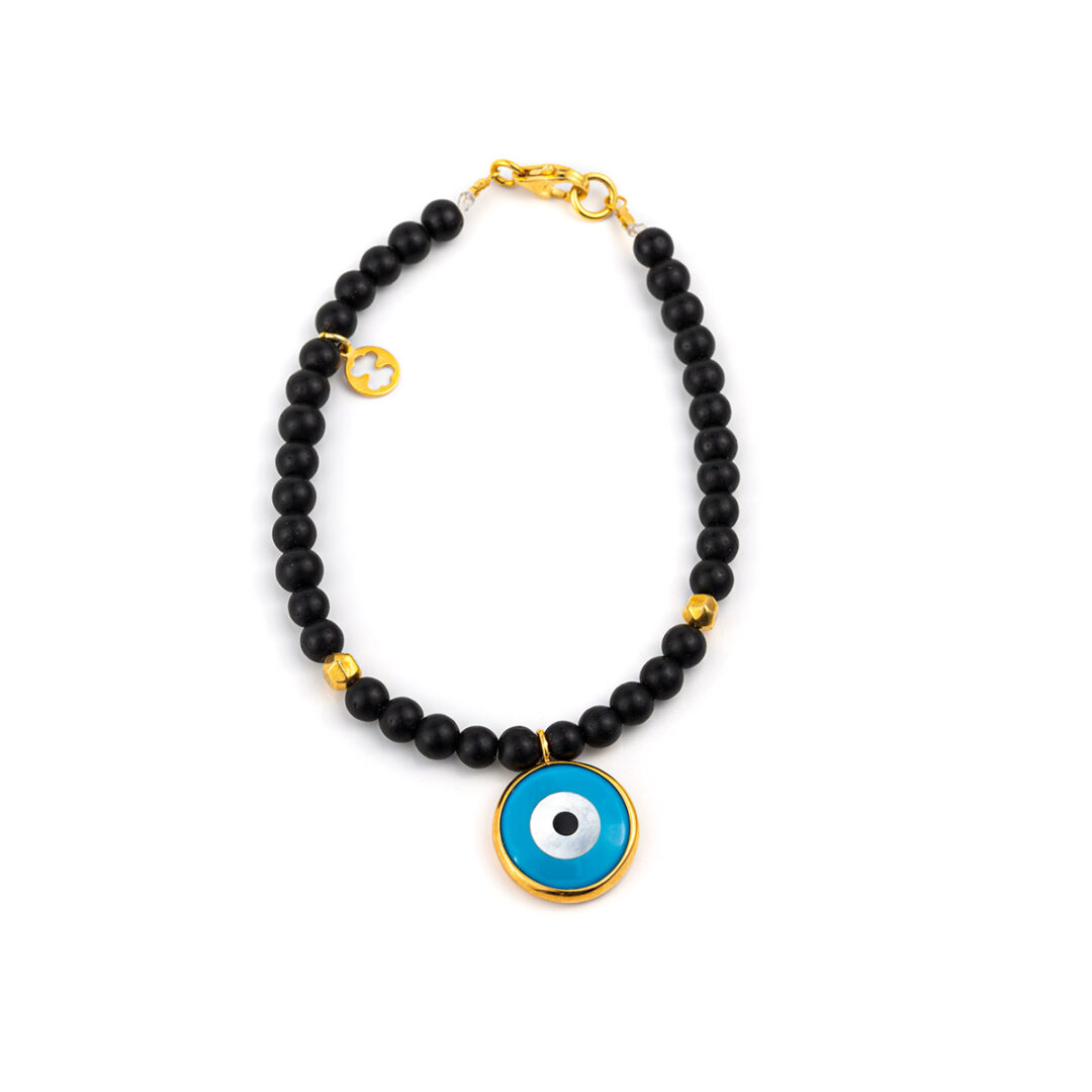 Black onyx bracelet with evil eye – Silver and Gold Plated