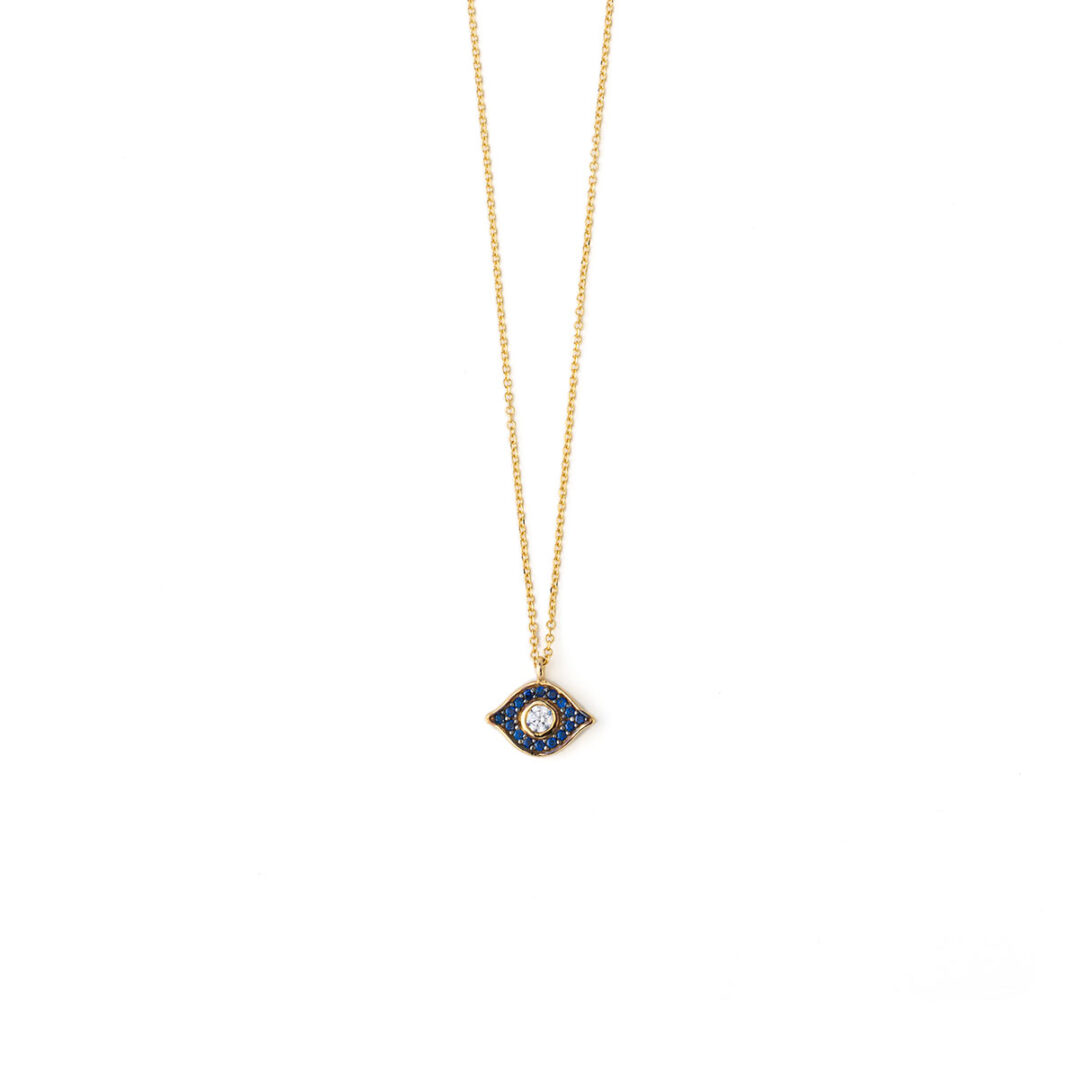 Blue Evil Eye Zircon Necklace – 14K Gold