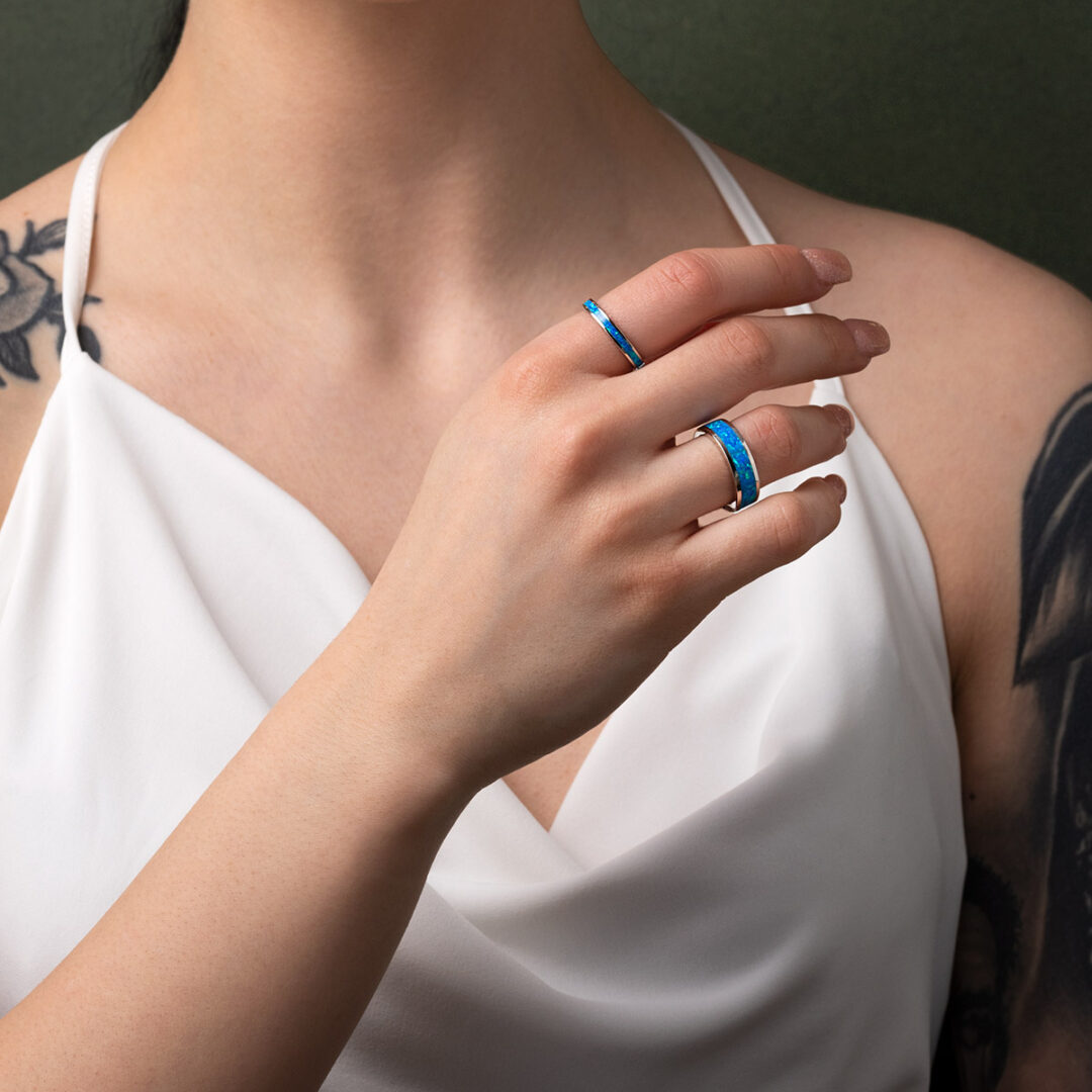 Made of 925⁰ sterling silver with blue opal stone.