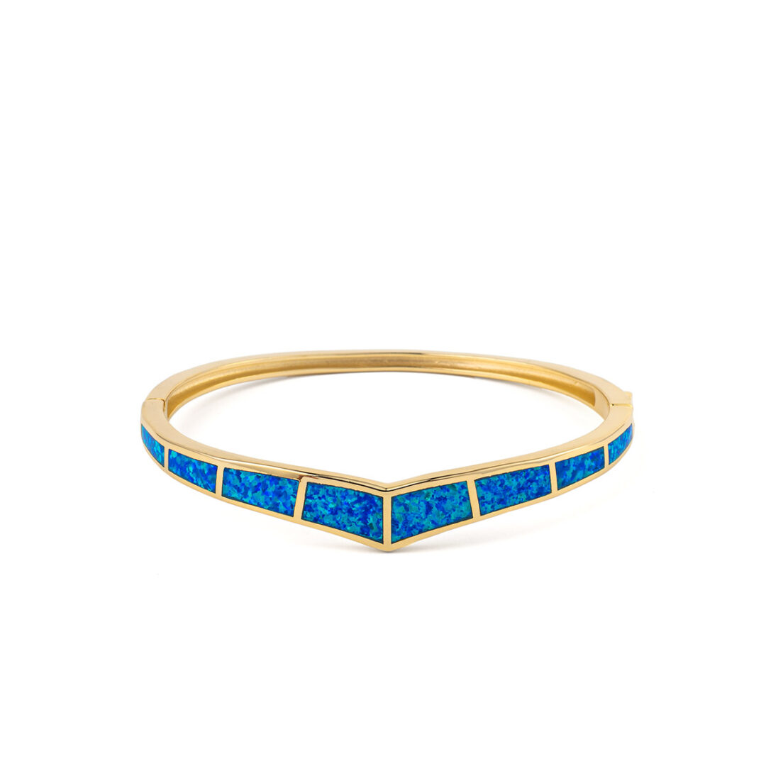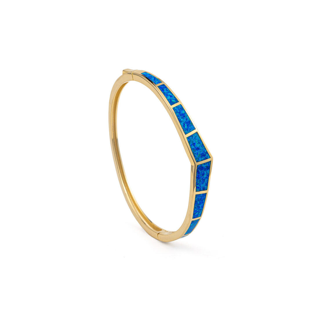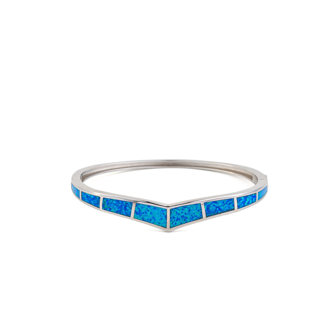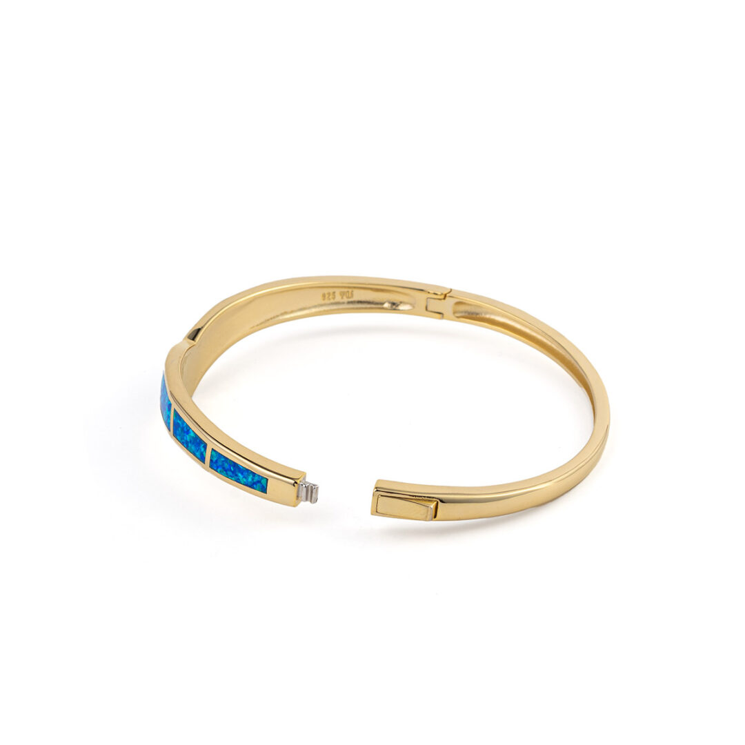 Blue Opal Bangle Bracelet – 925 Sterling Silver